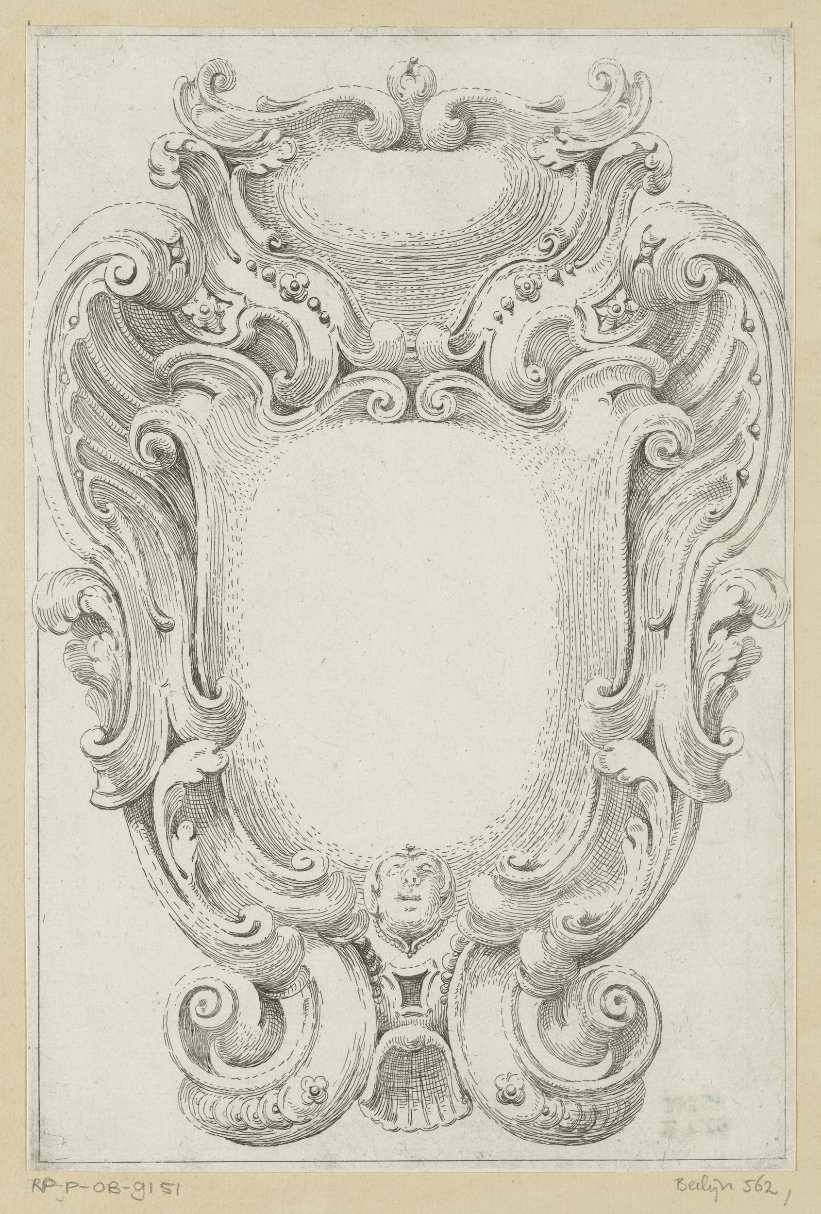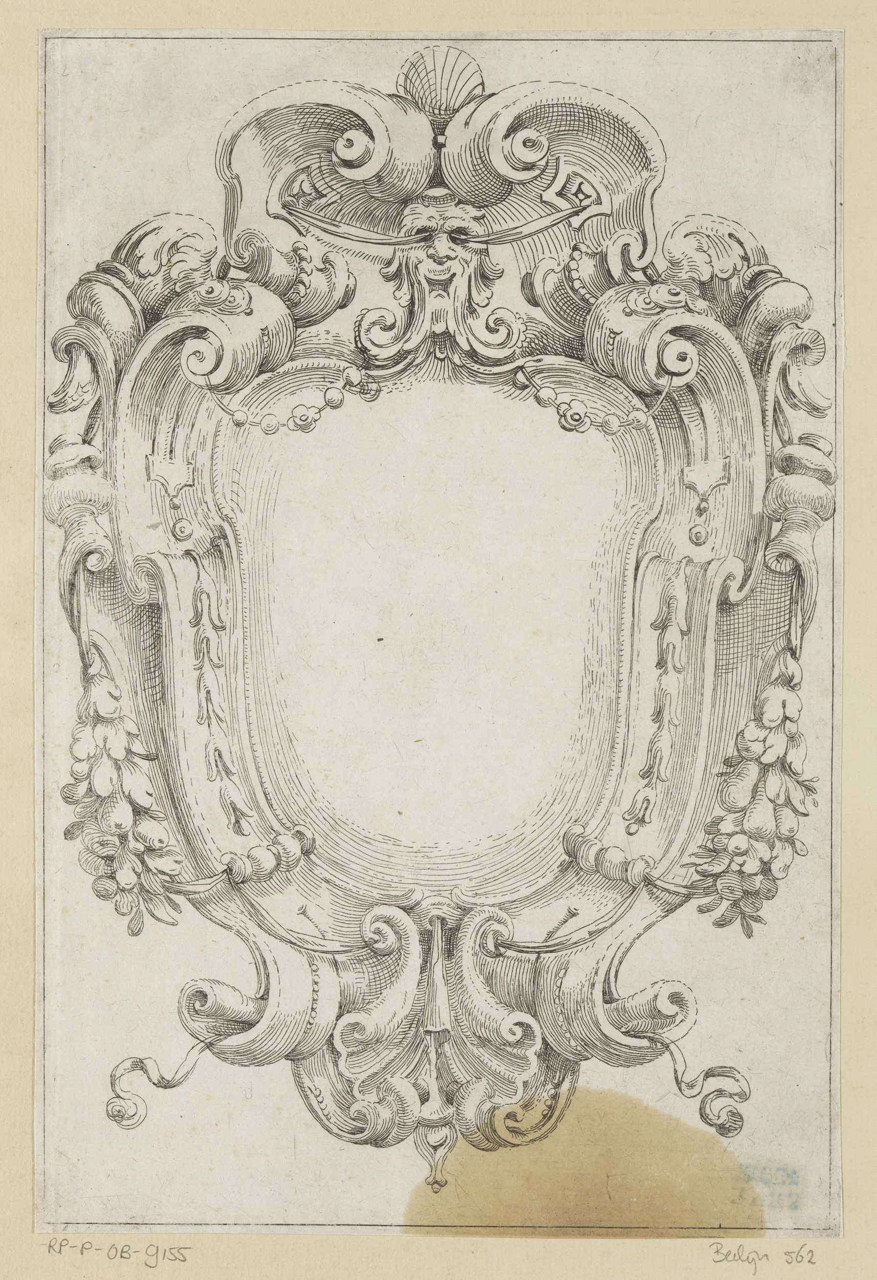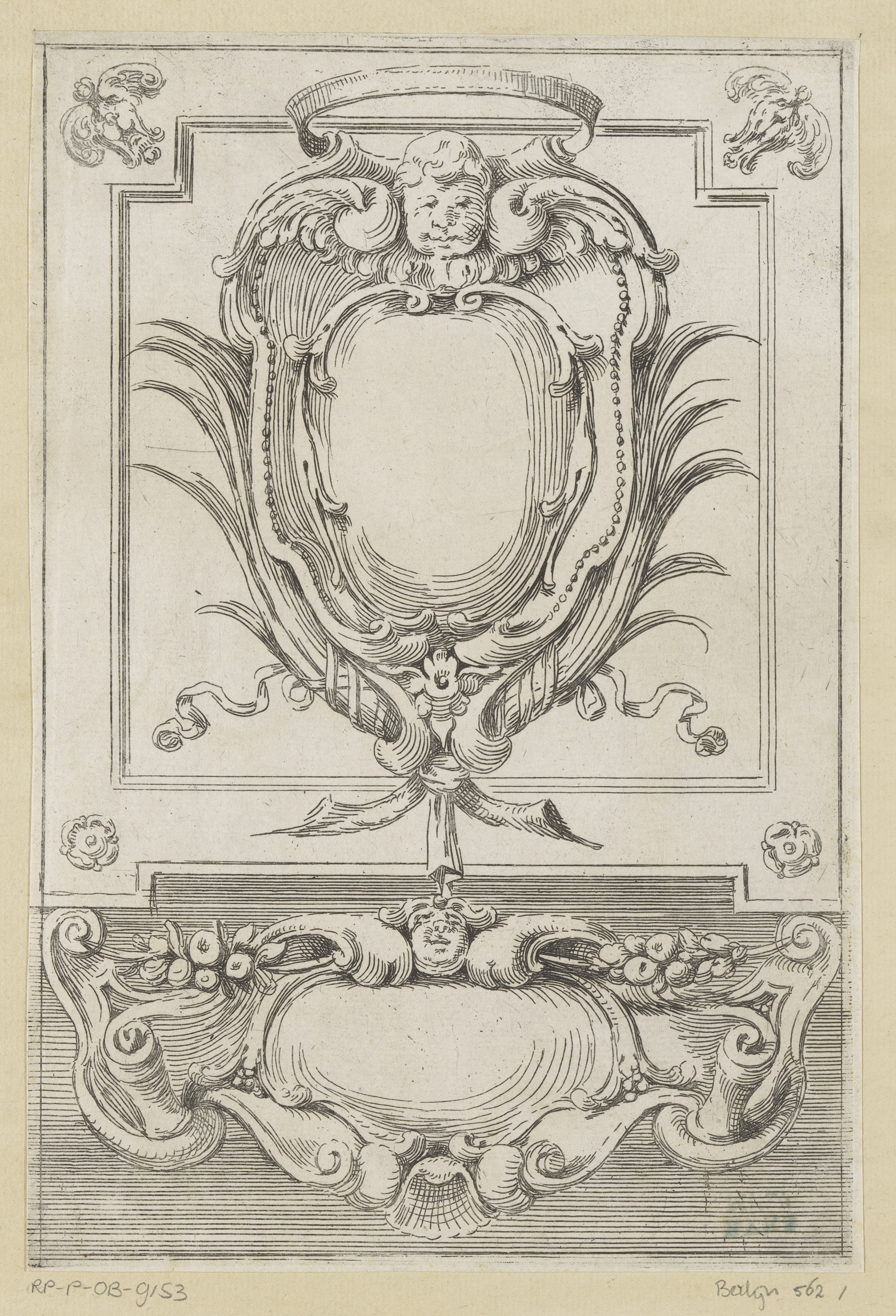 Cartouche ondersteund door twee gevleugelde zeemeerm...