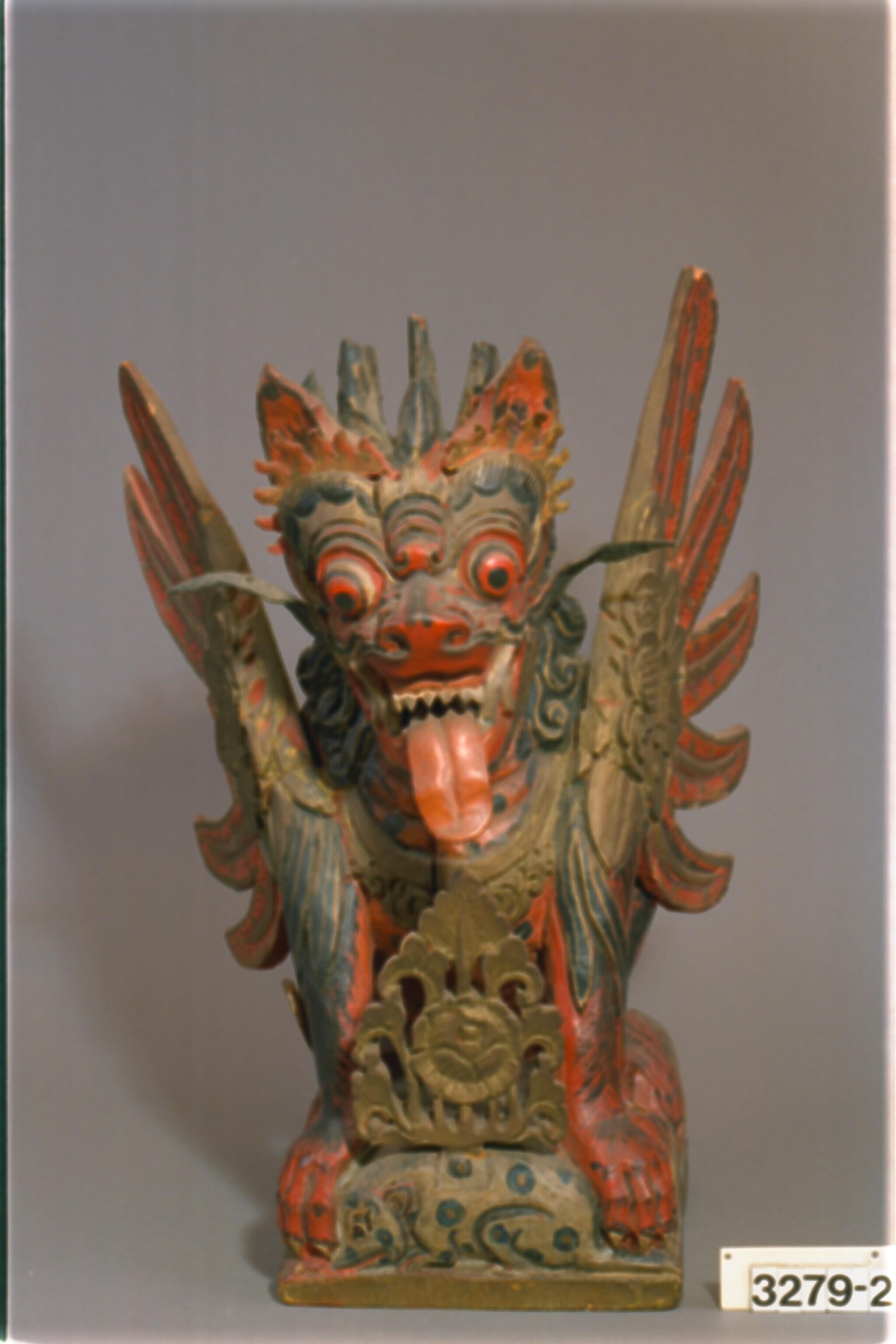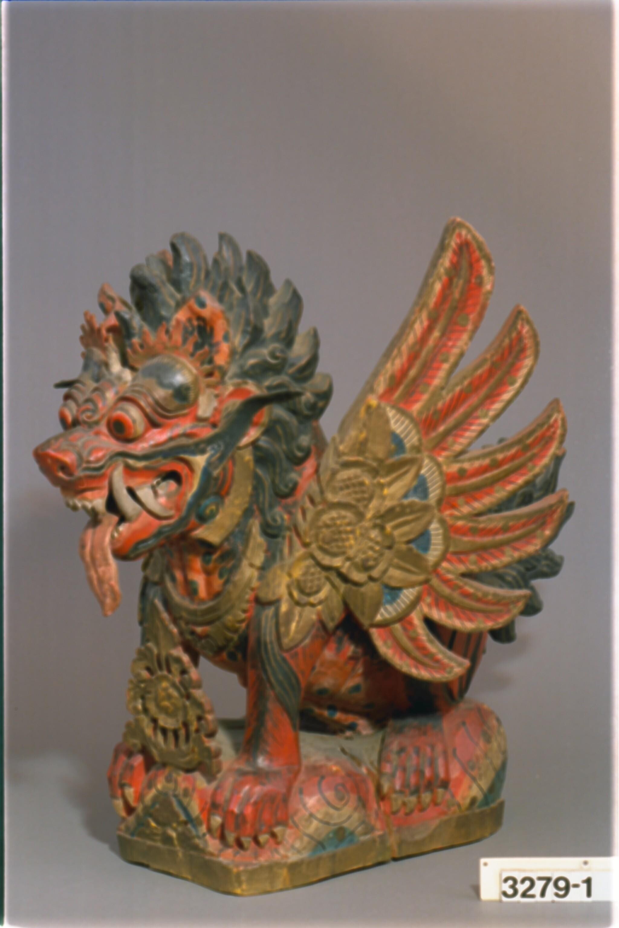 Houten beeld van een gevleugelde Singha