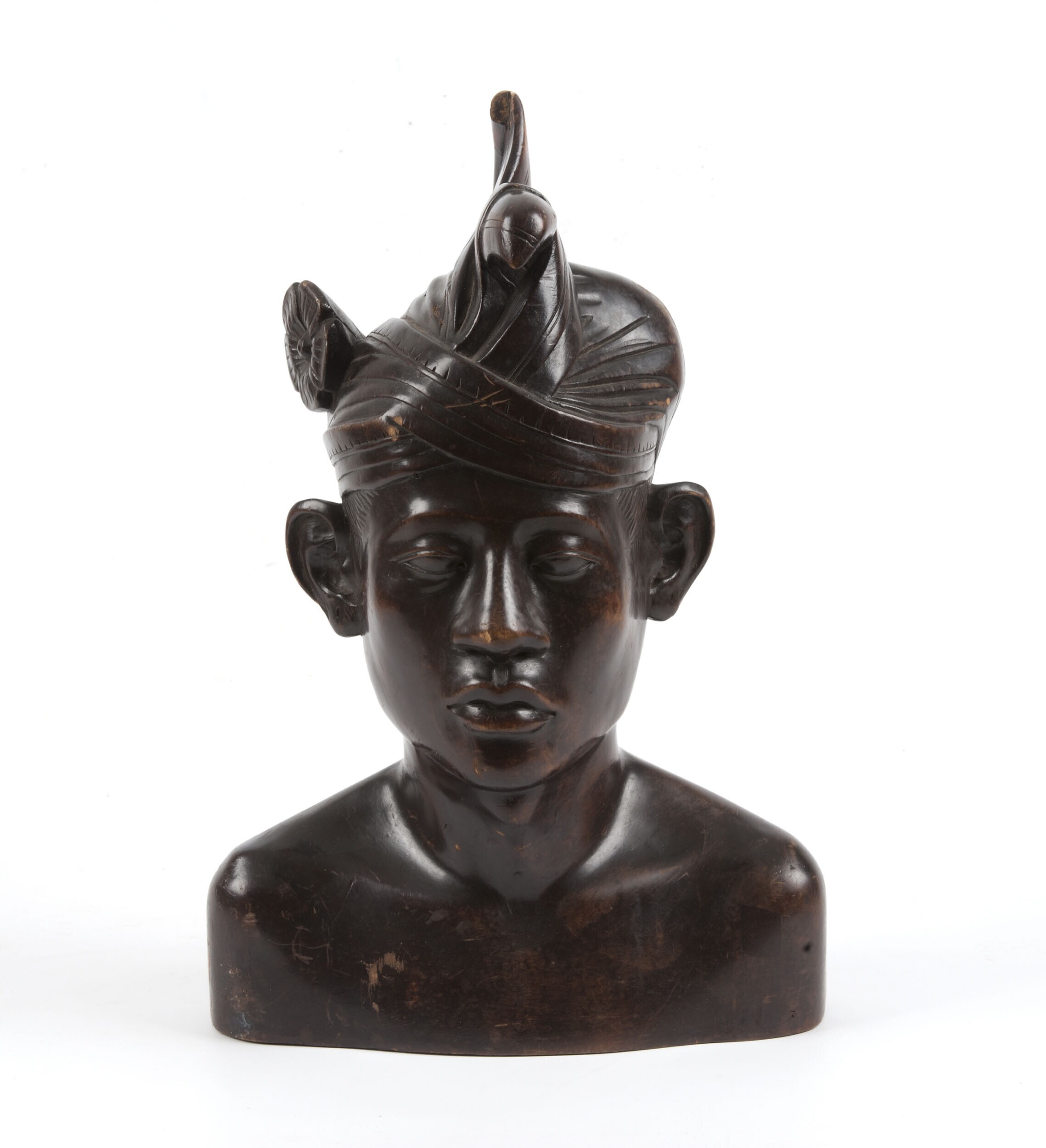 Gesnlen houten buste in de vorm van een manfiguur