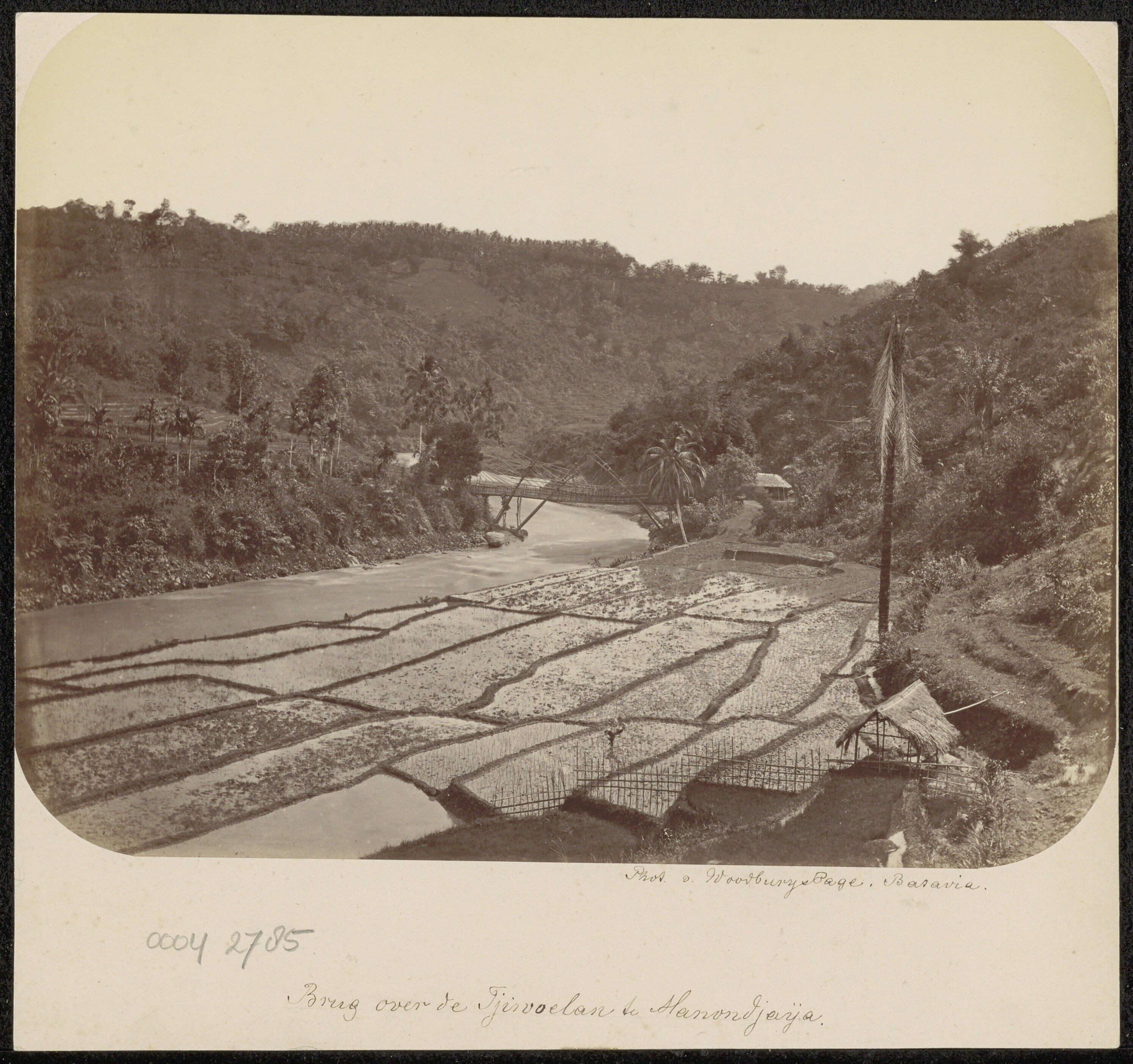 Rice terraces and a bamboo bridge across the Ciwulan...