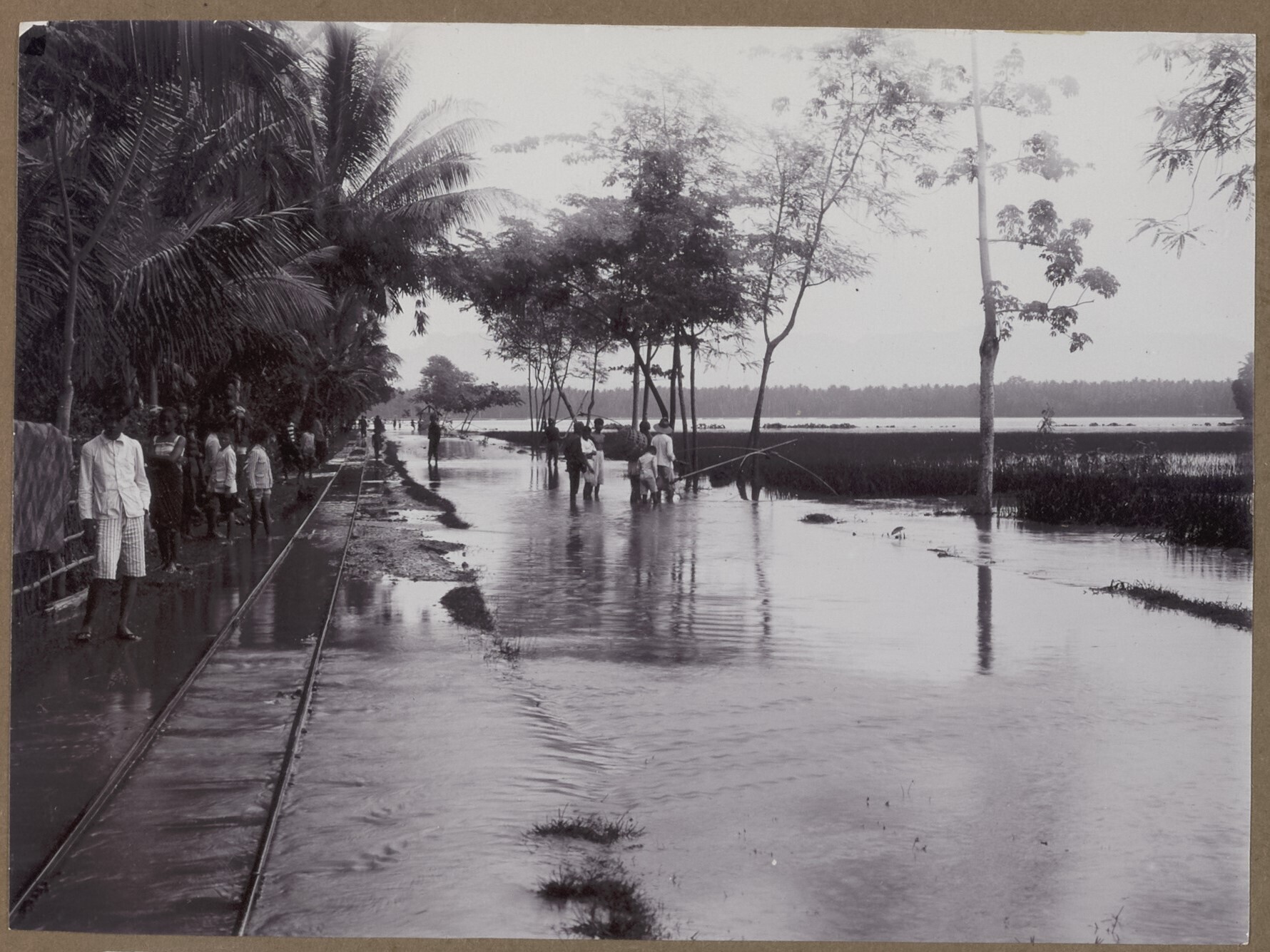 Dorpsbewoners vissen met kruisnetten in de ondergelo...