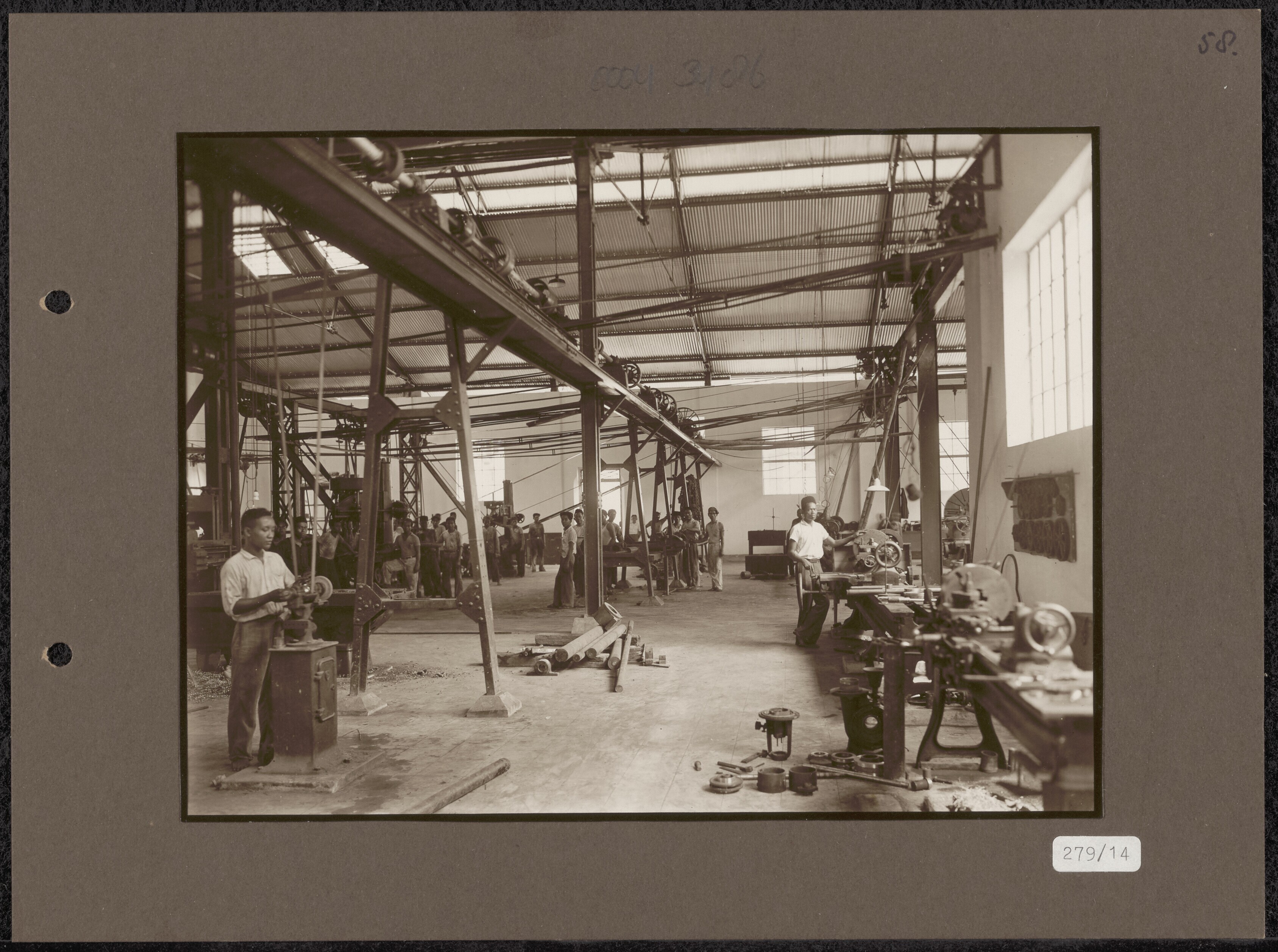 Javaanse arbeiders in een werkplaats bij Kediri (?)