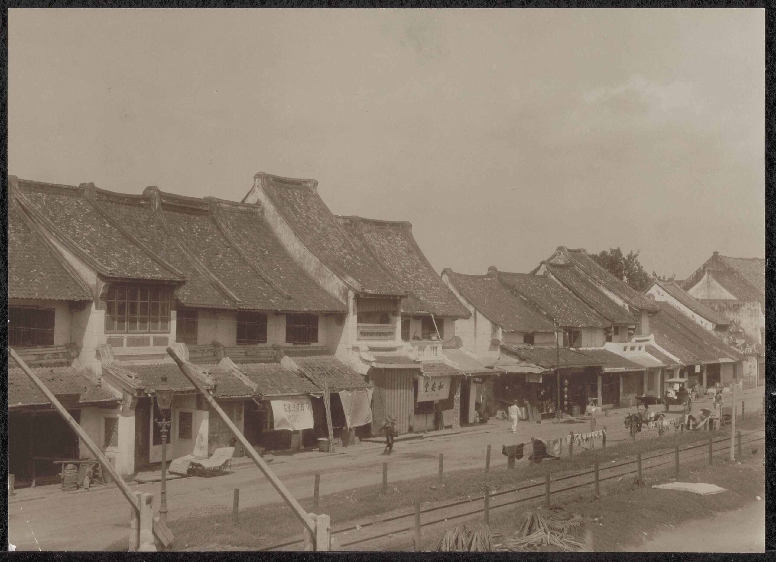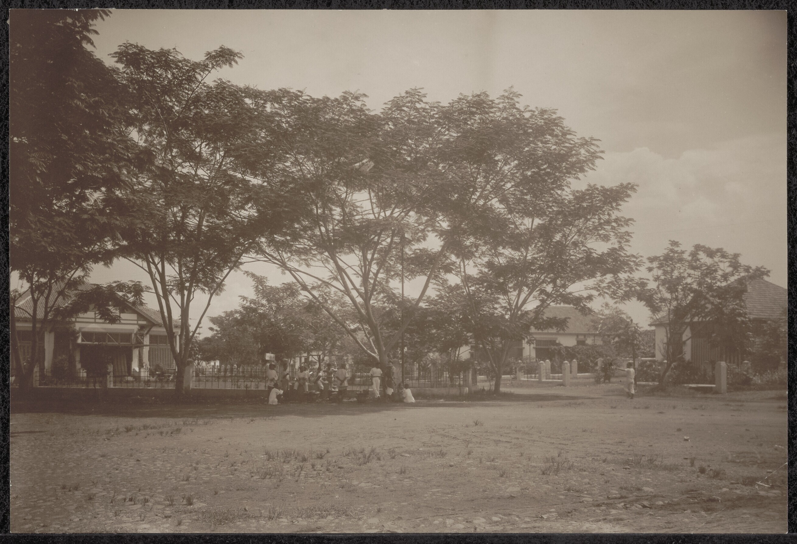 Gezicht in de kampong met de huizen van de arbeiders...