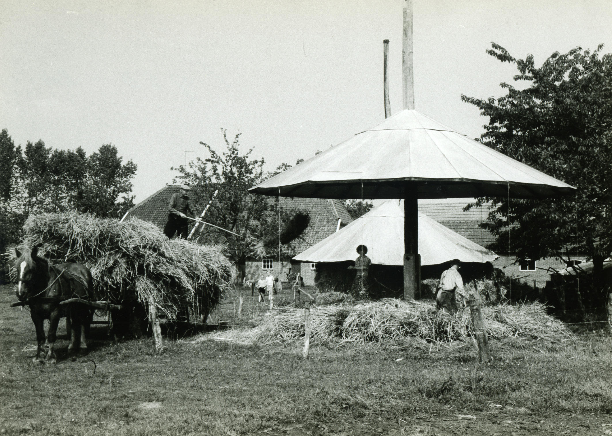 Inhalen van de rogge, Zieuwent, 1963 (zwart-wit foto)