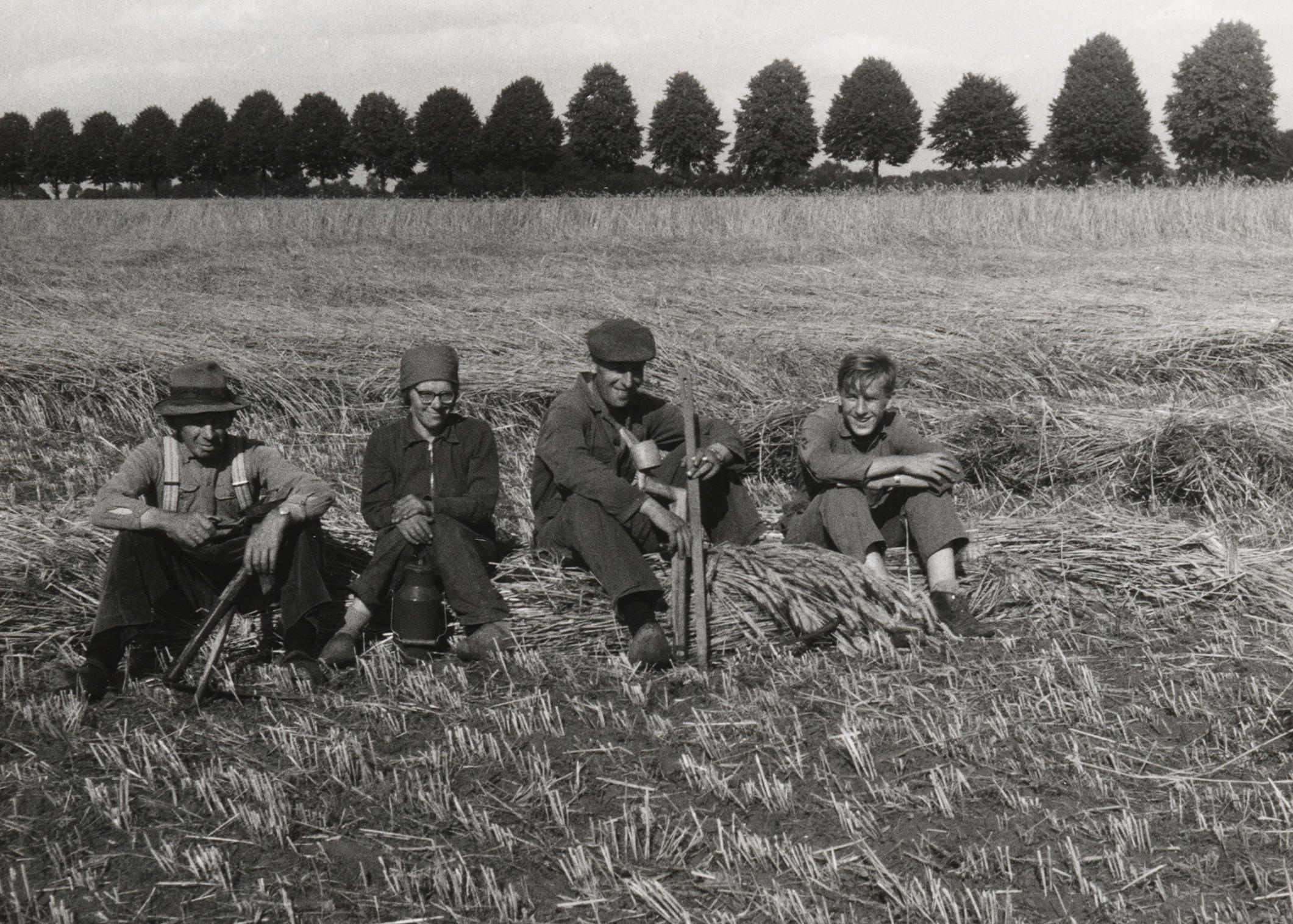 Schafttijd tijdens de rogge-oogst, Lievelde, 1963 (z...