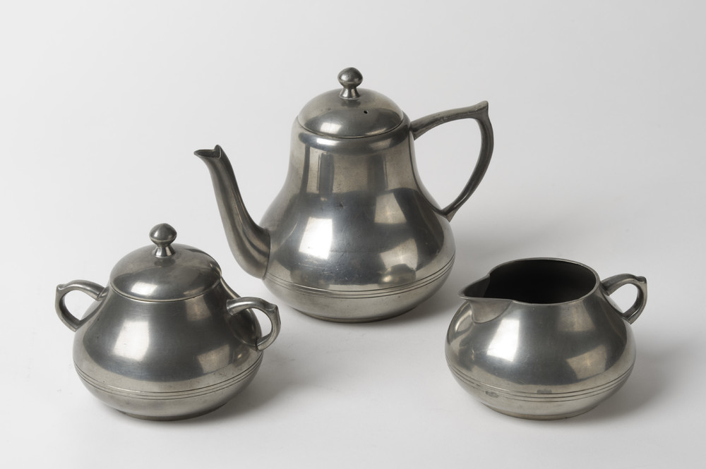 Theeservies van tin, vervaardigd door Jeka te Tiel, ...