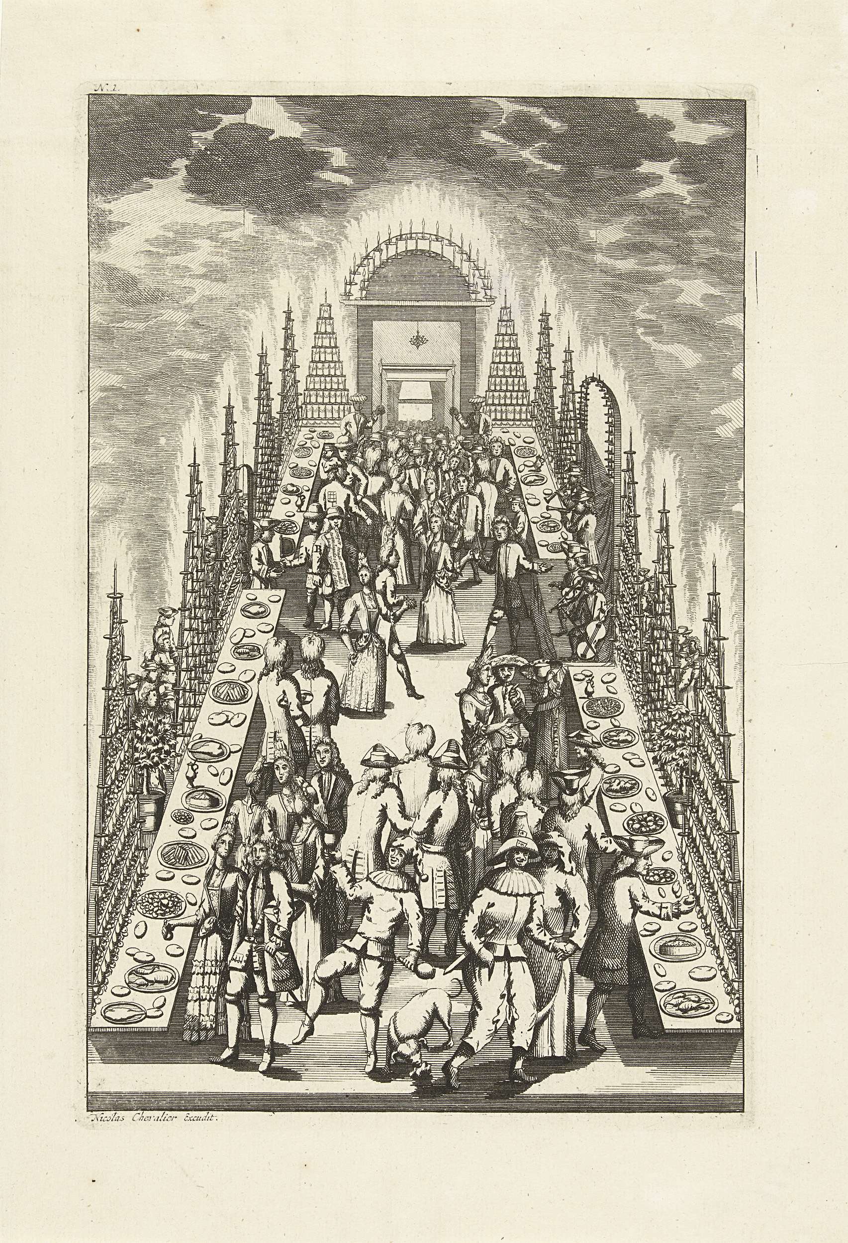 Feestmaal met gemaskerden en muziek, 1713