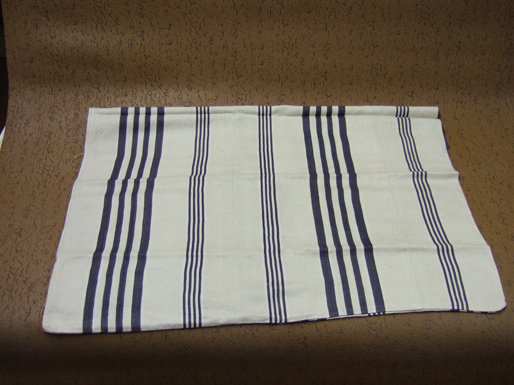 Sloop van katoen, blauwe banen in wit geweven.