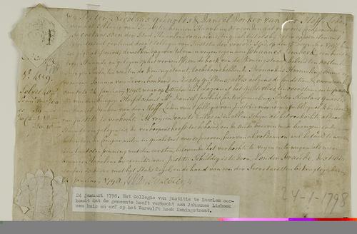 Akte verkoop huis en erf, 1798