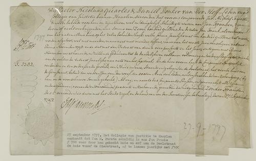 Akte verkoop huis, 1782