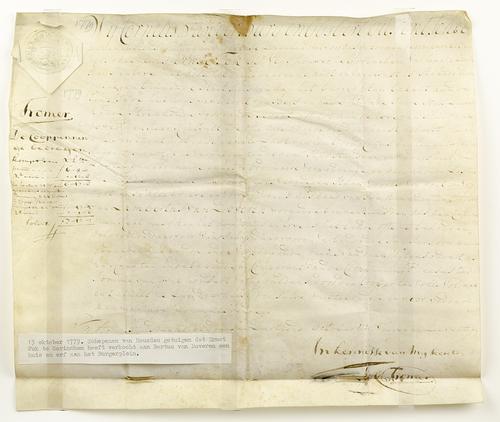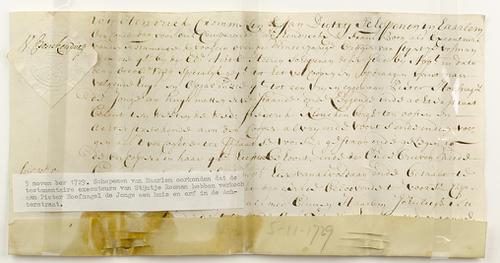 Akte verkoop huis en erf, 1779