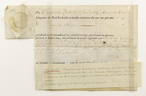 Akte transport huis en erve, 1763
