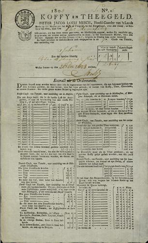 Aanslagbiljet, koffiegeld, theegeld, 1803