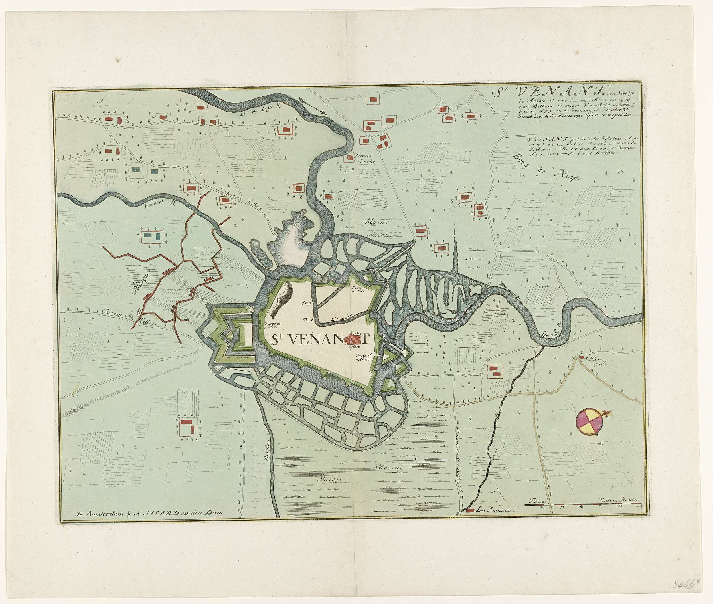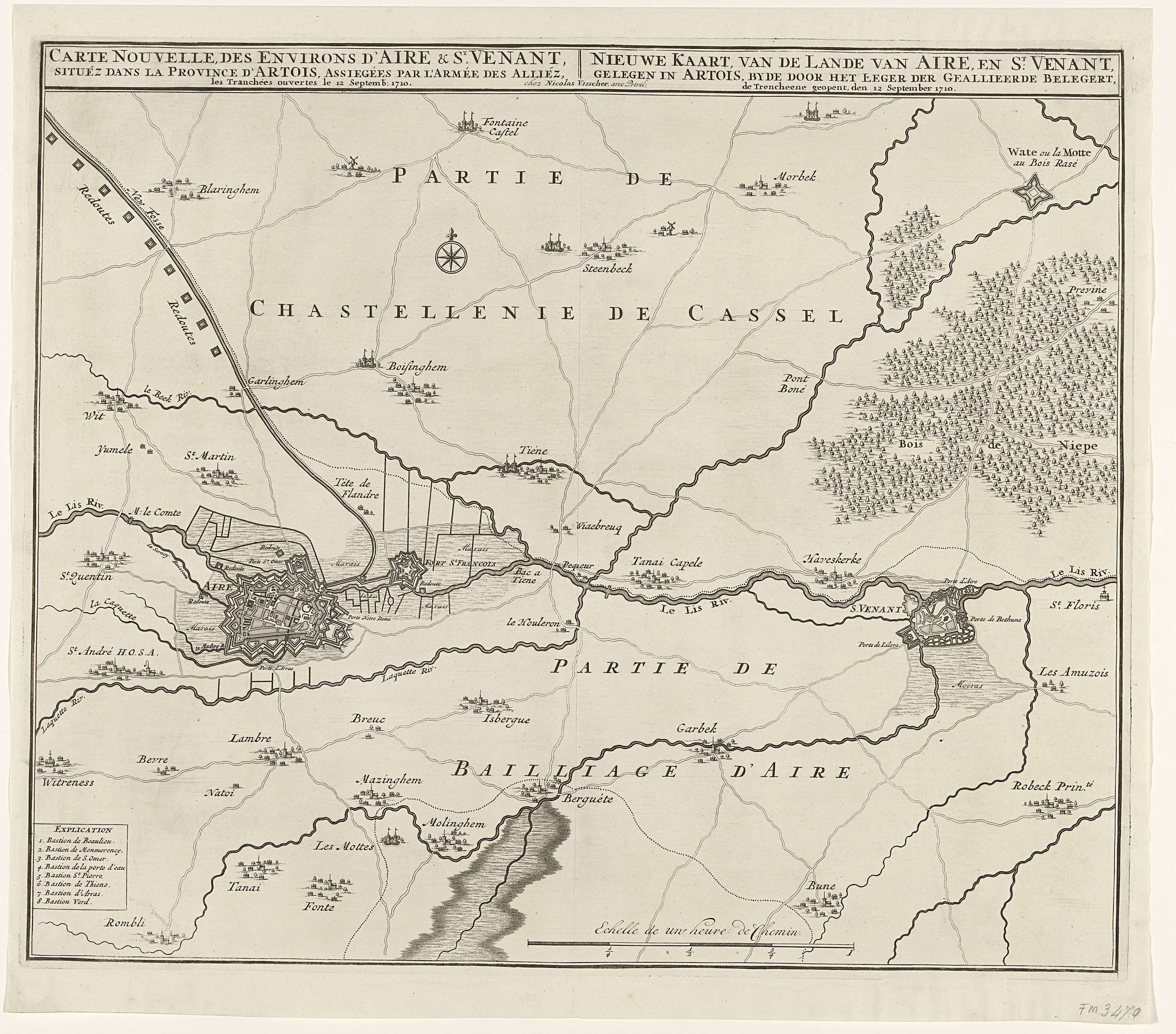 Kaart van het gebied tussen Aire en Saint-Venant, 1710