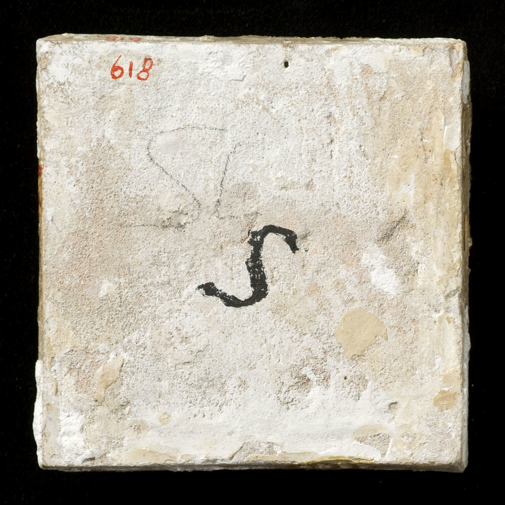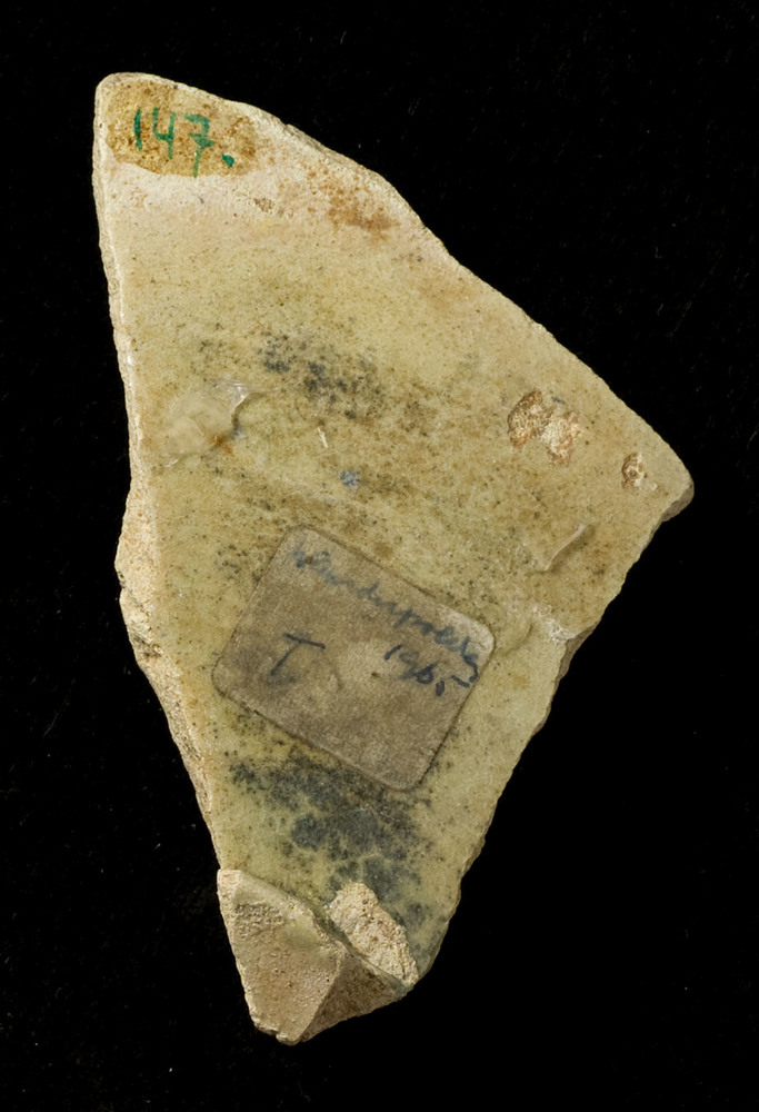 Scherf van keramiek, tinglazuur, gemaakt in Nederlan...
