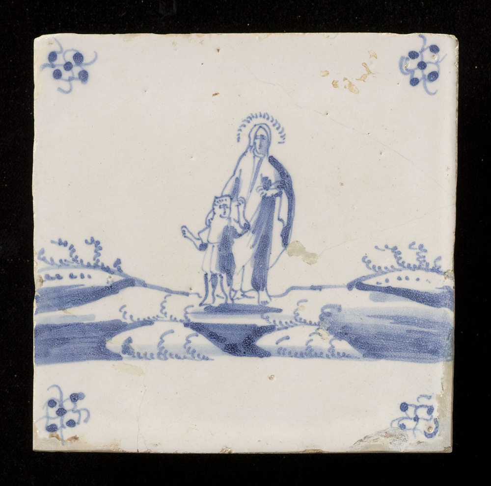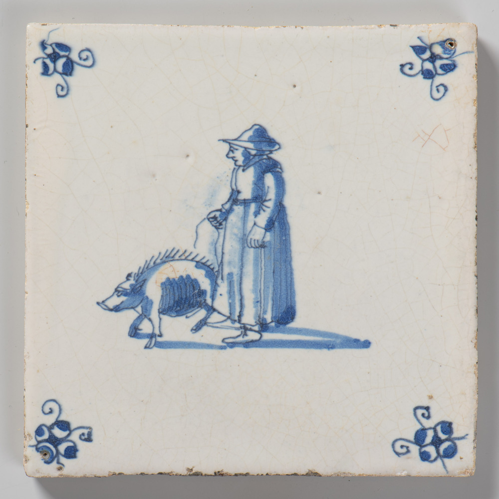 tegel van aardewerk met tinglazuur, voorstellende: b...