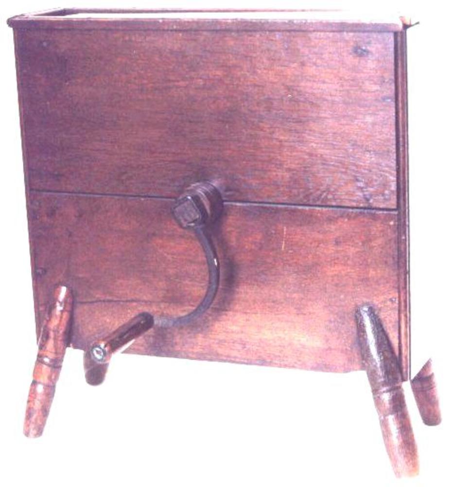 snijbonenmolen. Platte vierkante kist van eikenhout ...