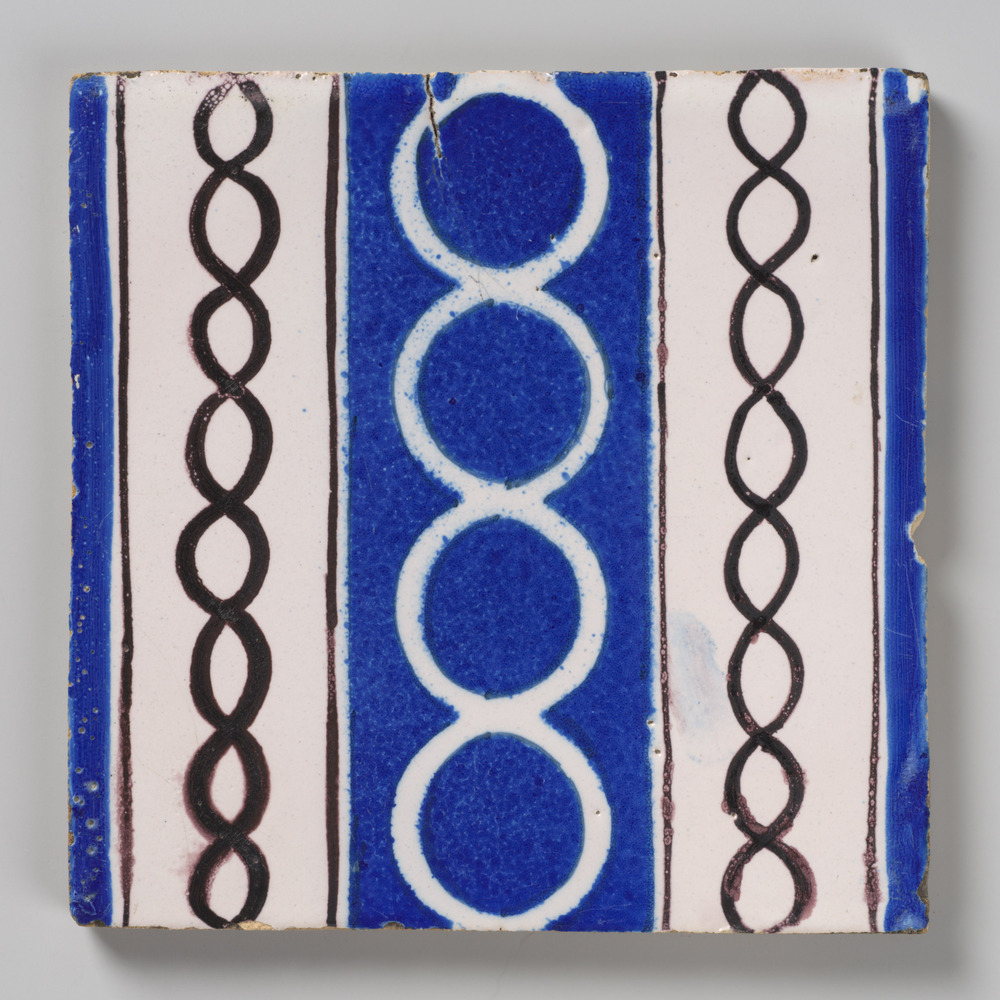 randtegel van aardewerk met tinglazuur, voorstellend...