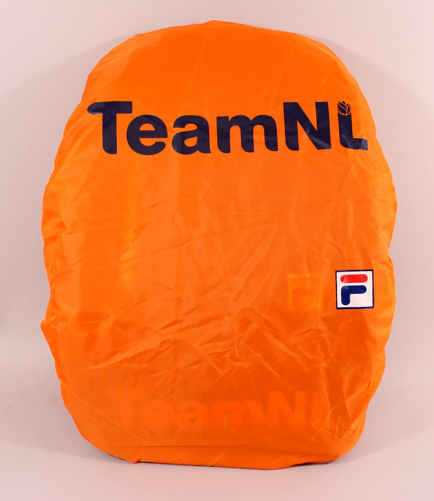Blauwe rugzak met oranje regenscherm Olympische zome...