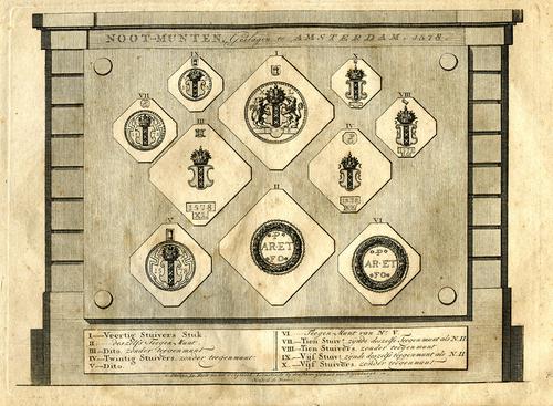 Affiche met afbeeldingen van tien noodmunten, 1578-1580