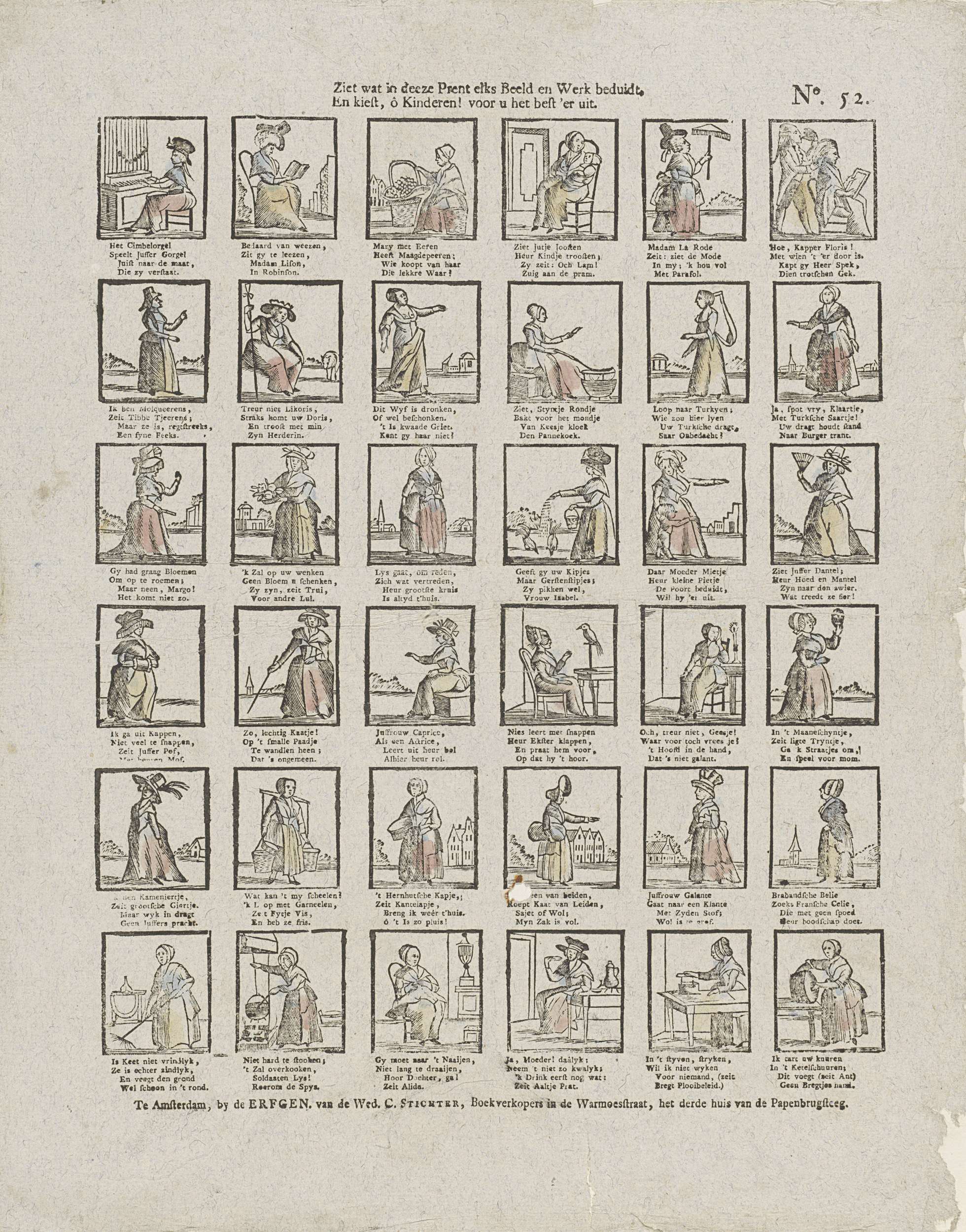 Ziet wat in deeze prent elks beeld en werk beduidt. ...