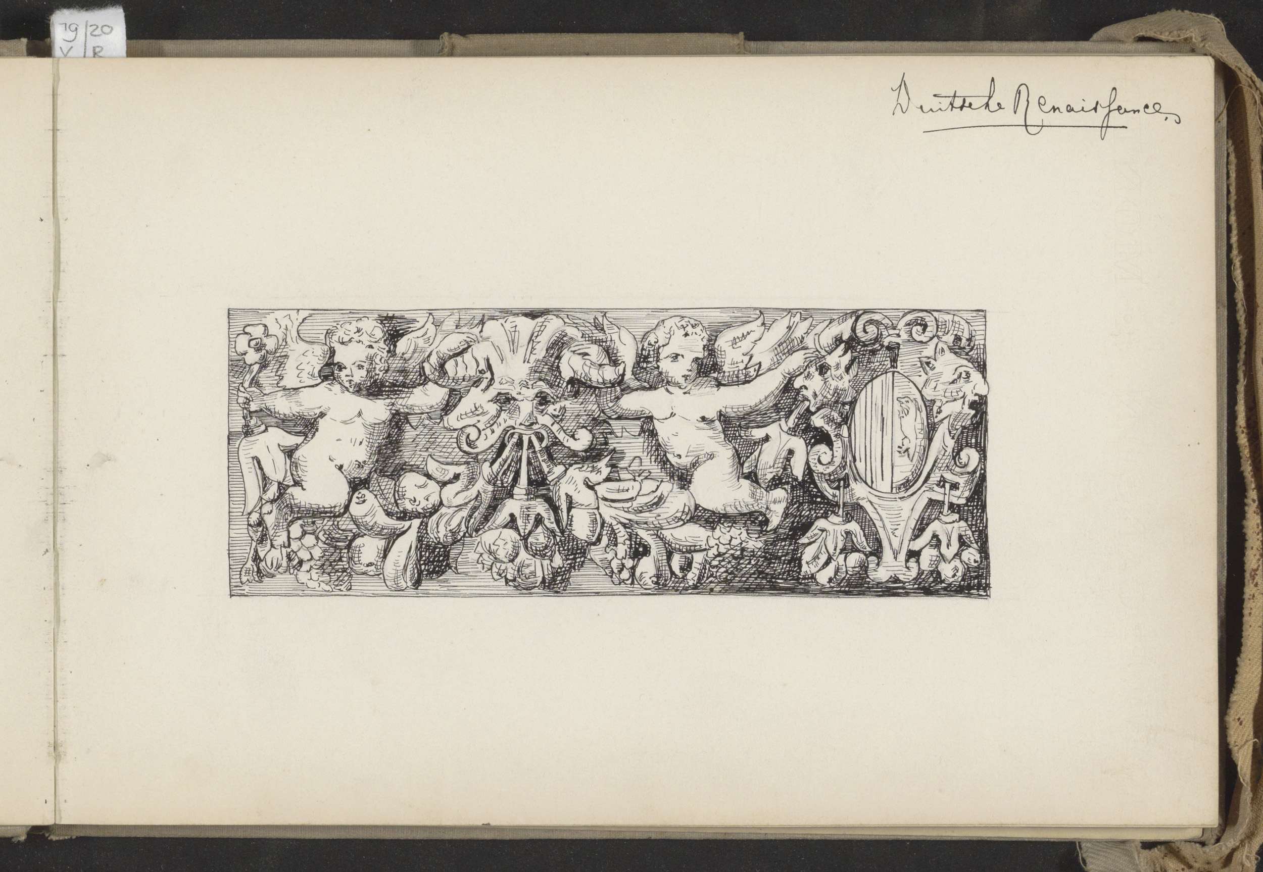 Duits renaissancistisch ornament met engelen en cart...