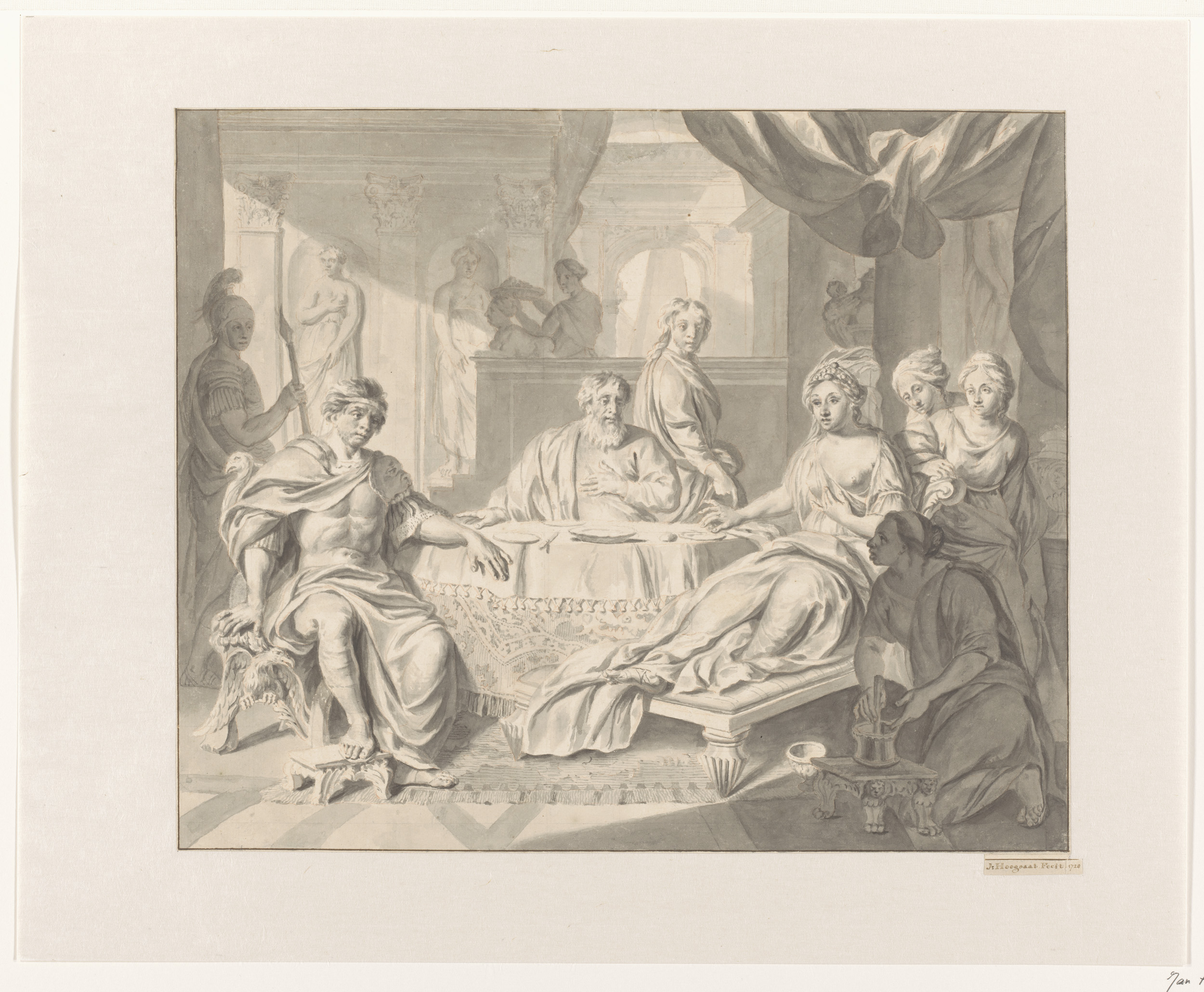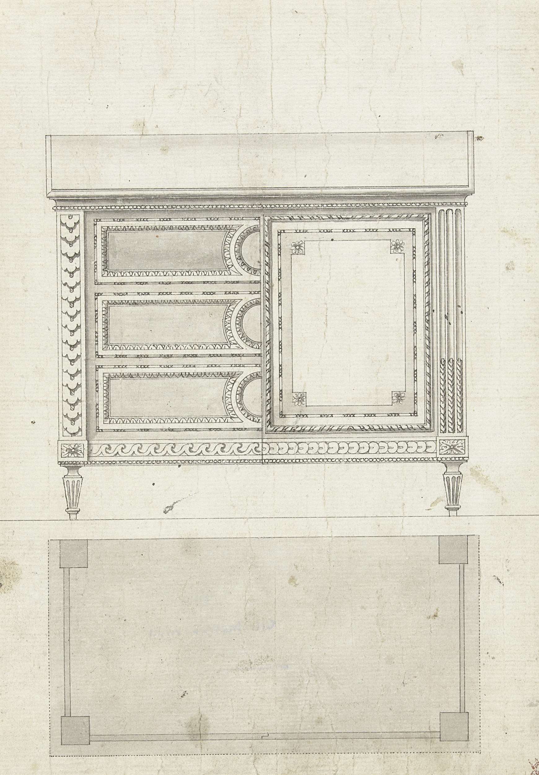 Ontwerp voor een wanddecoratie met twee allegorische...
