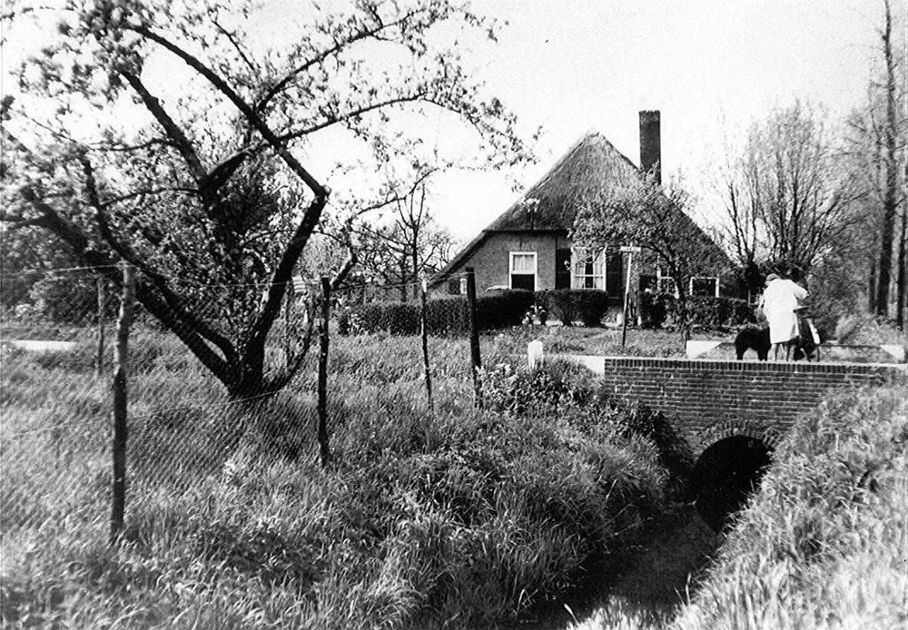 Zwart-wit foto van Huis Aerdt met nog niet herstelde...