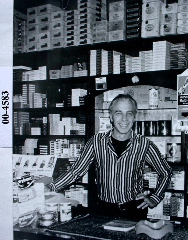 De heer Theo Pruijn in zijn tabakswinkel in de Helmi...