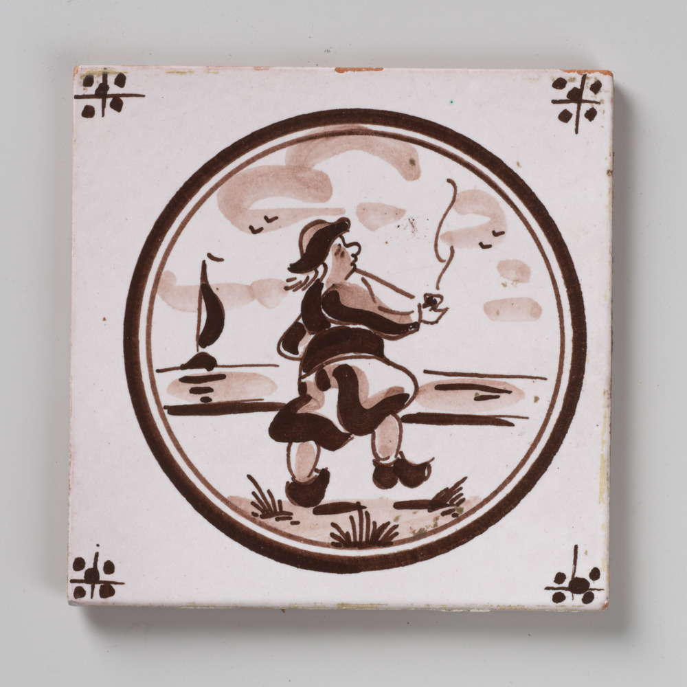 tegel van aardewerk met tinglazuur, voorstellende: p...