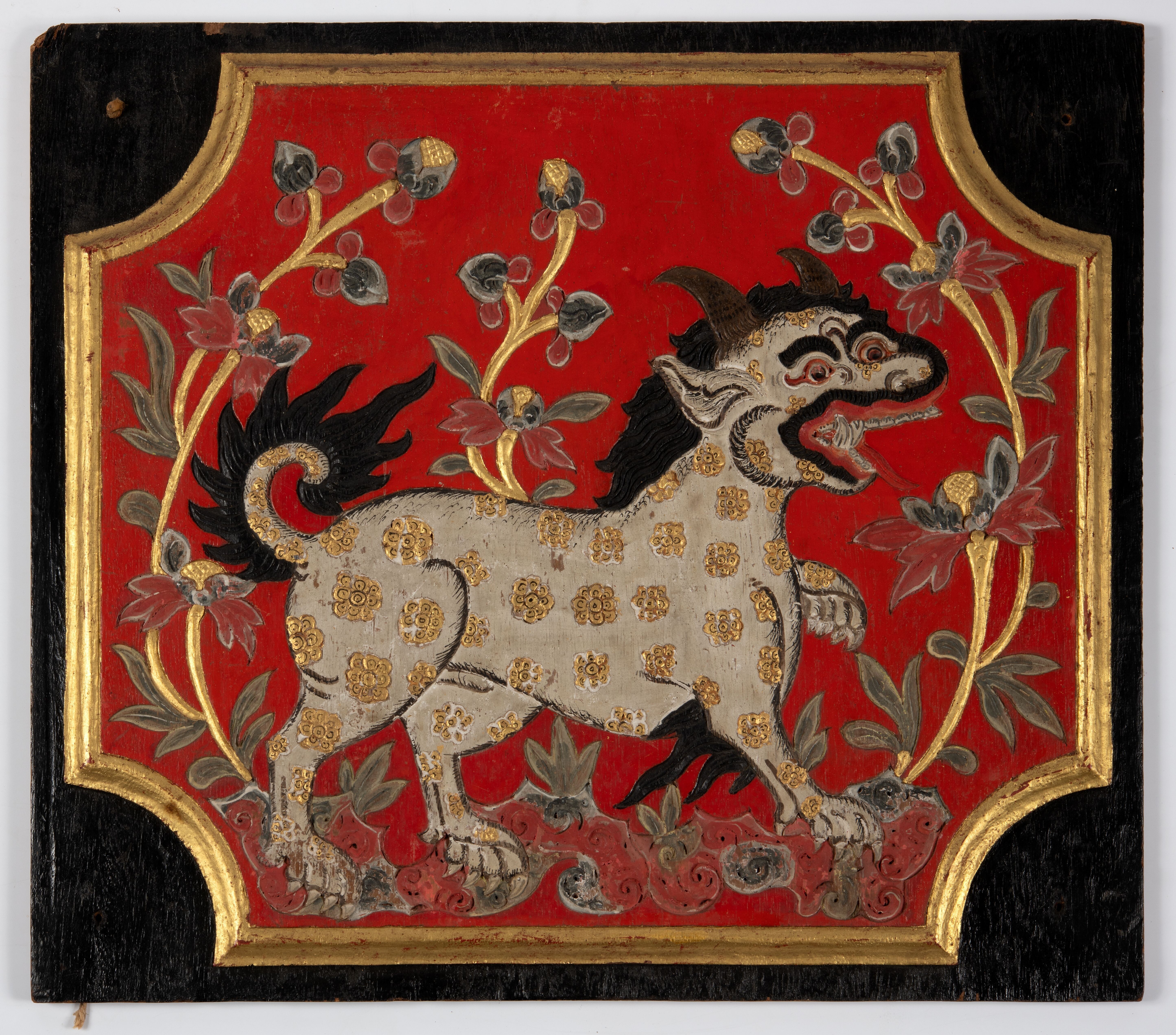 Gesnlen houten wandversiering voorstellende een gevl...