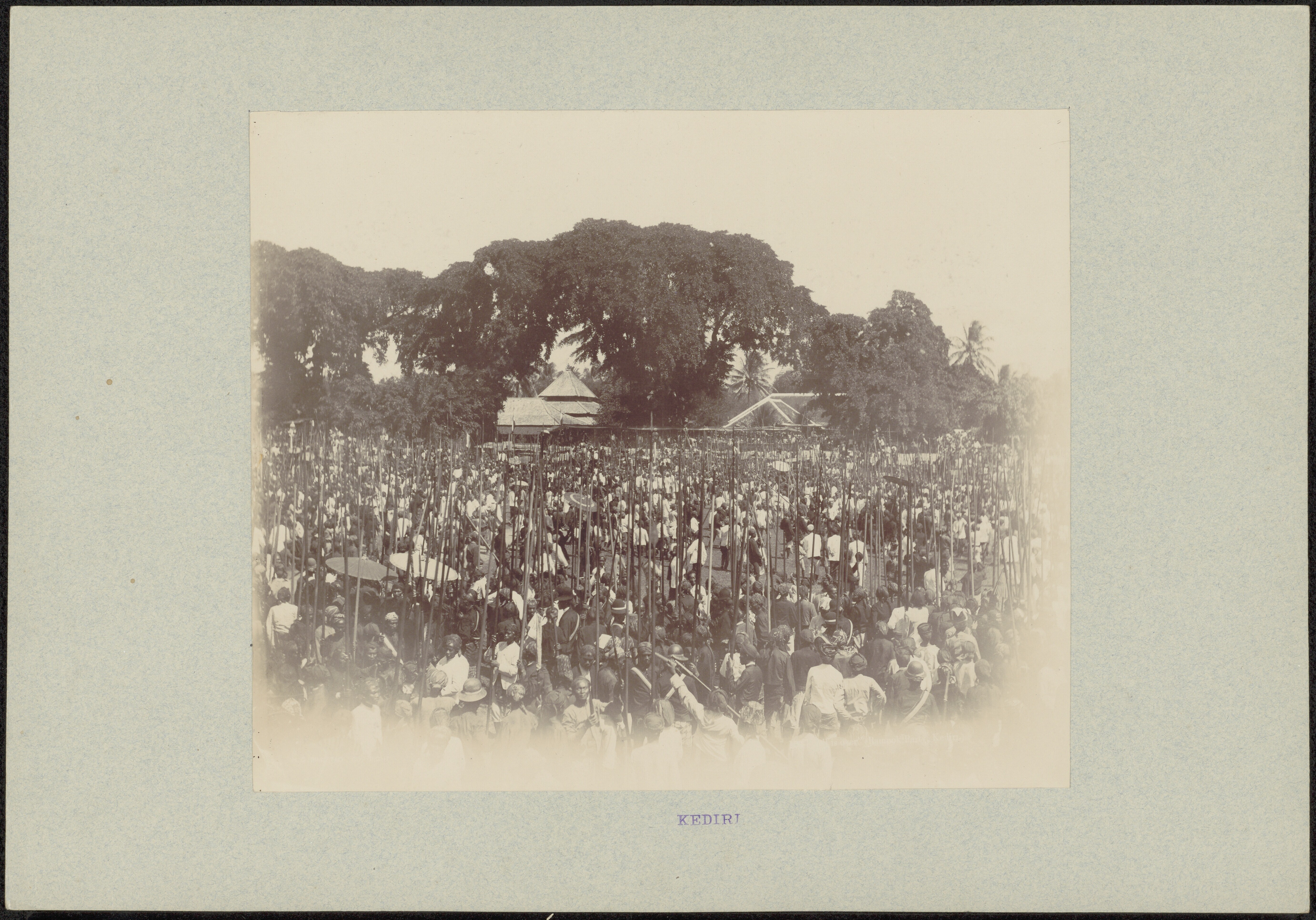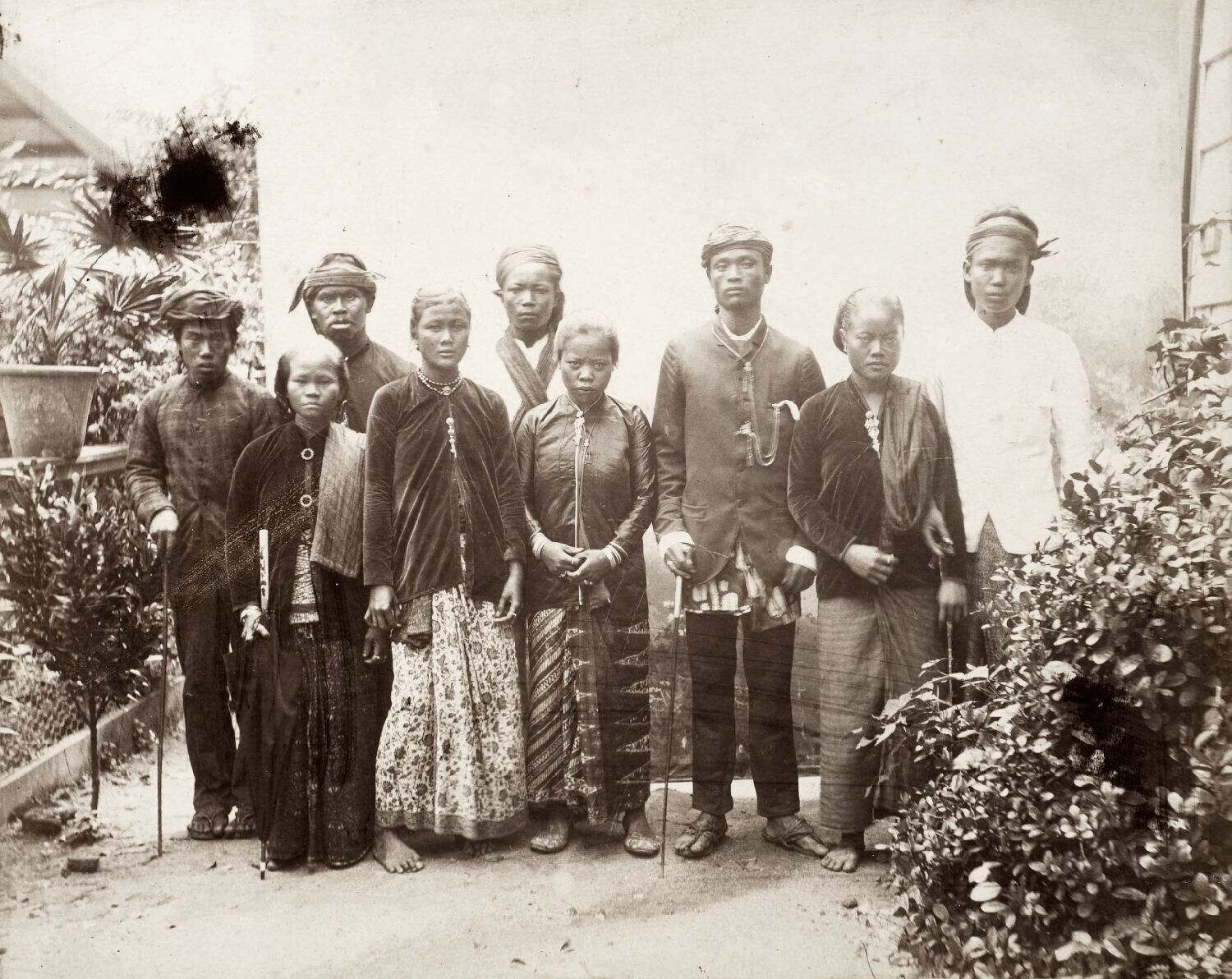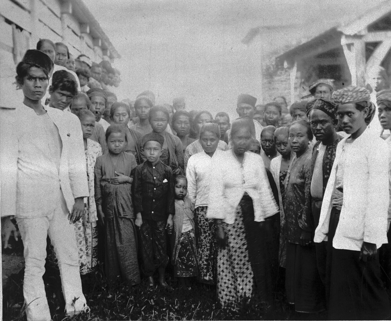 Een groep Javaanse mannen en vrouwen bij een waterput