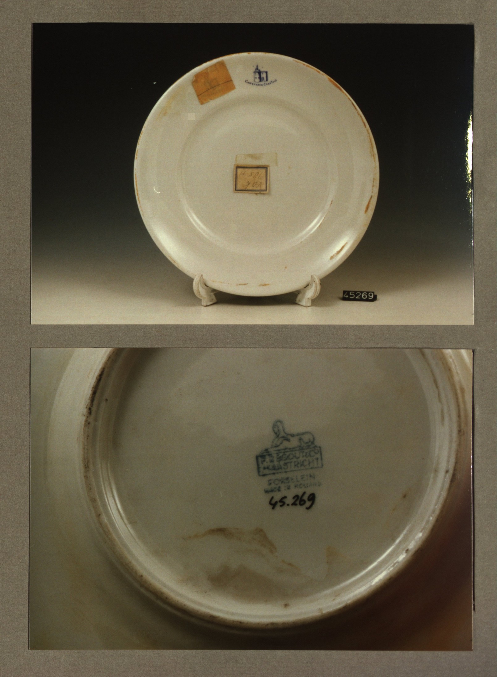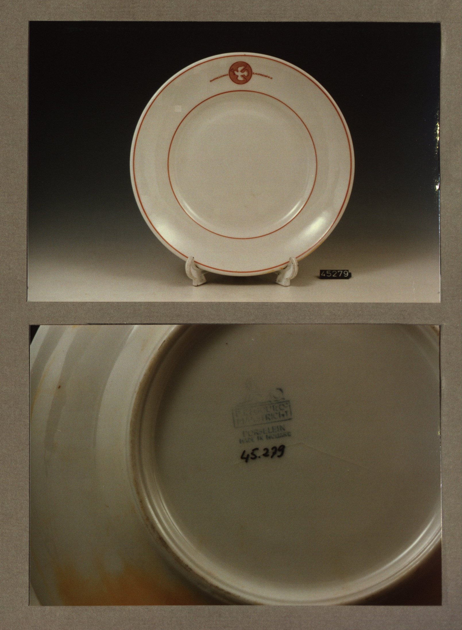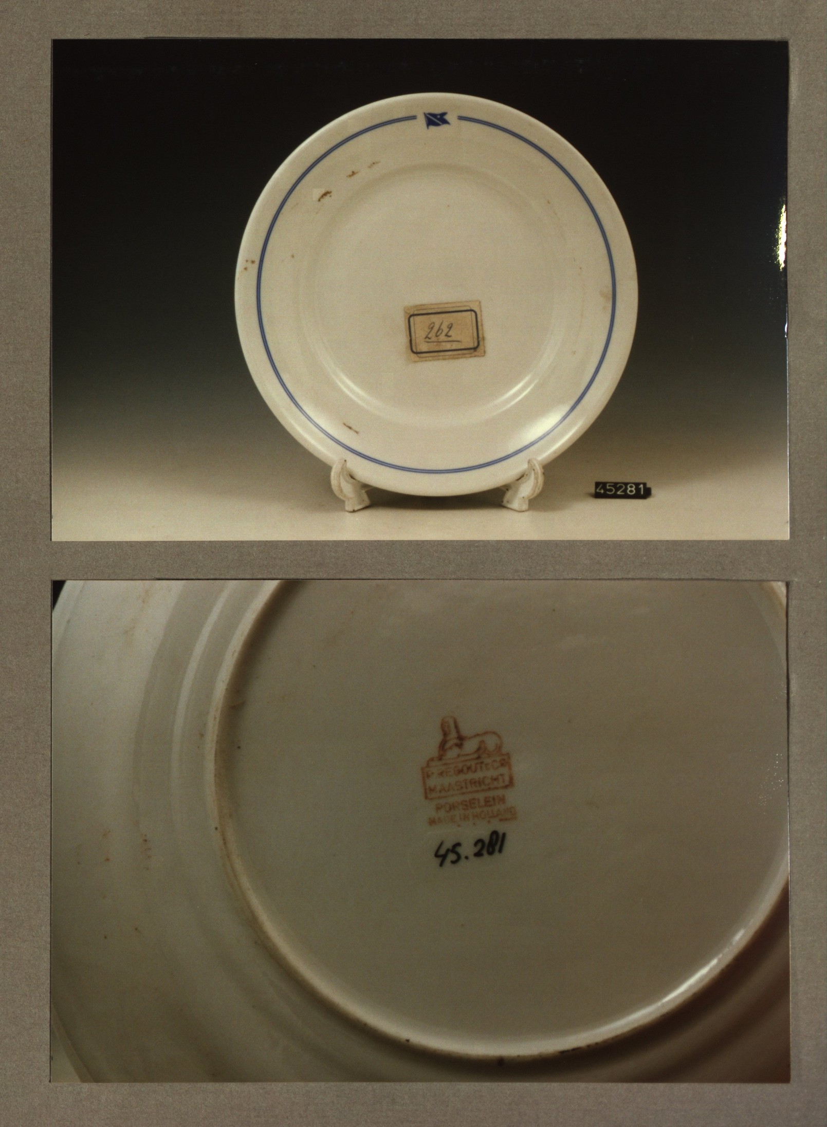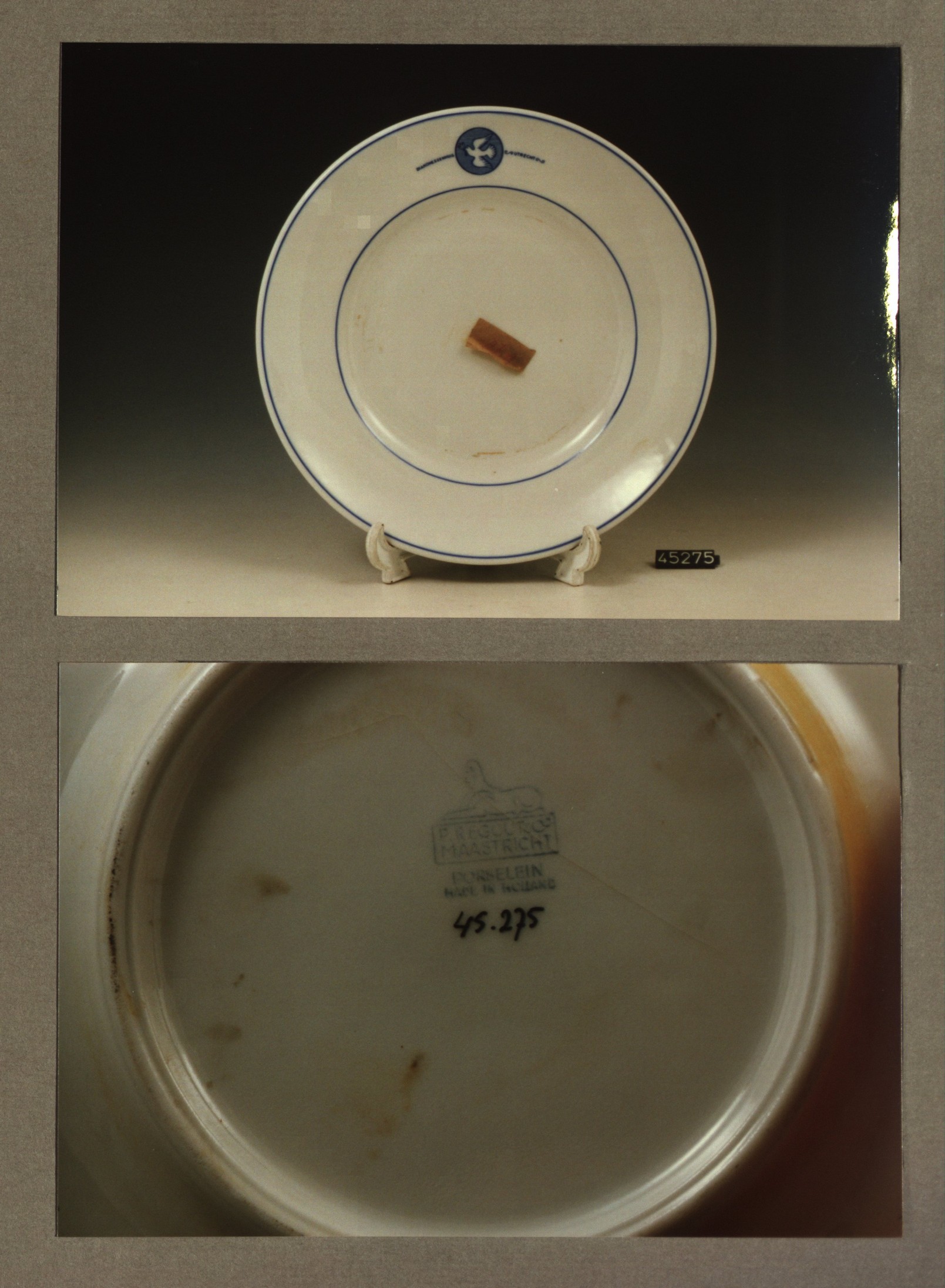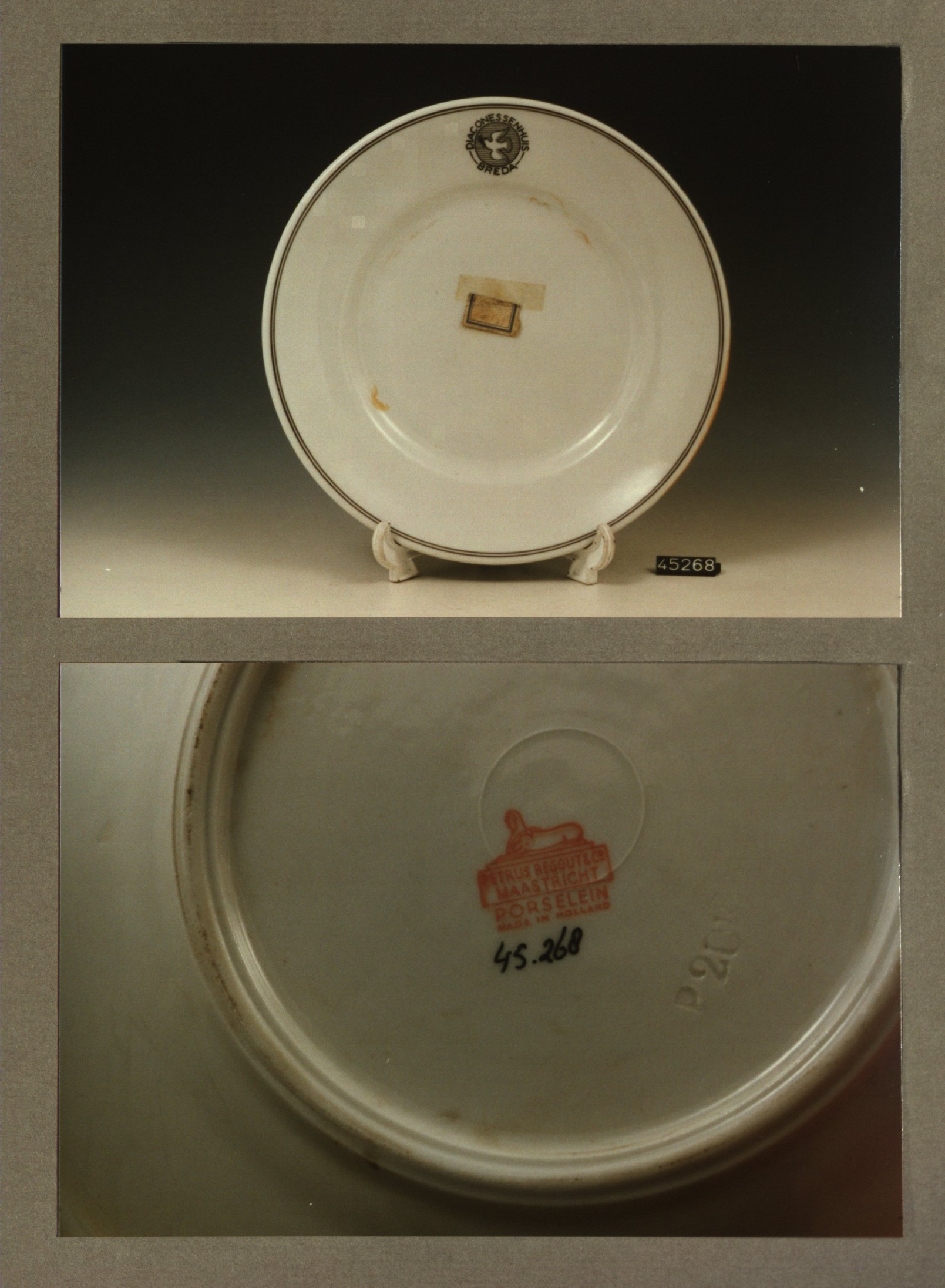 Plat bord, model P met decor Diaconessenhuis Breda
