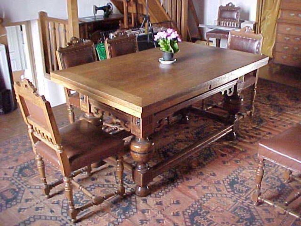 Tafel van eikenhout, in 17e eeuwse stijl, met flesse...