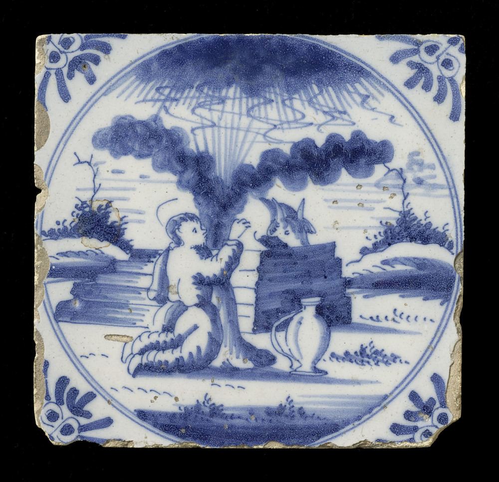 tegel van keramiek met tinglazuur, voorstellende: He...