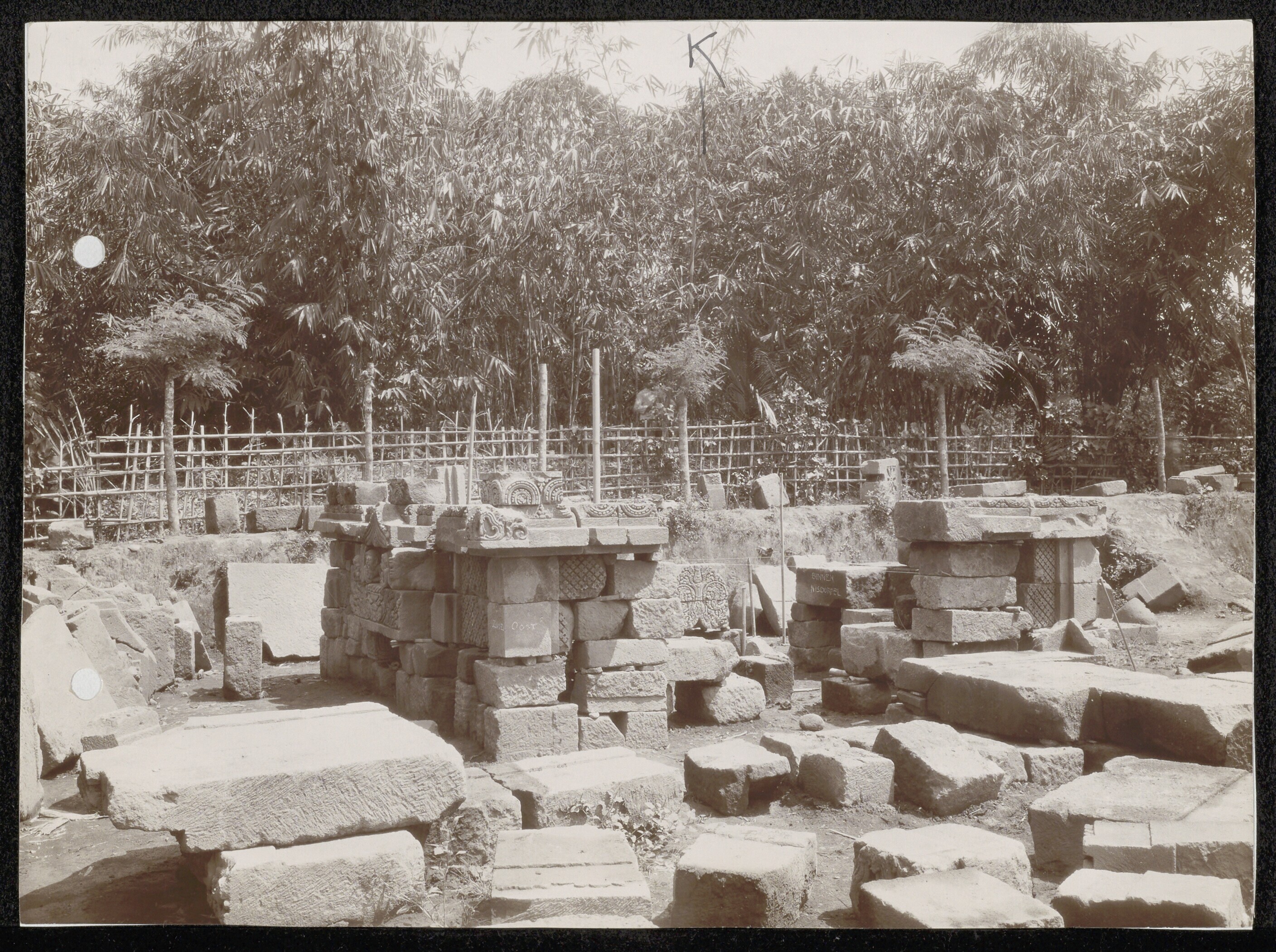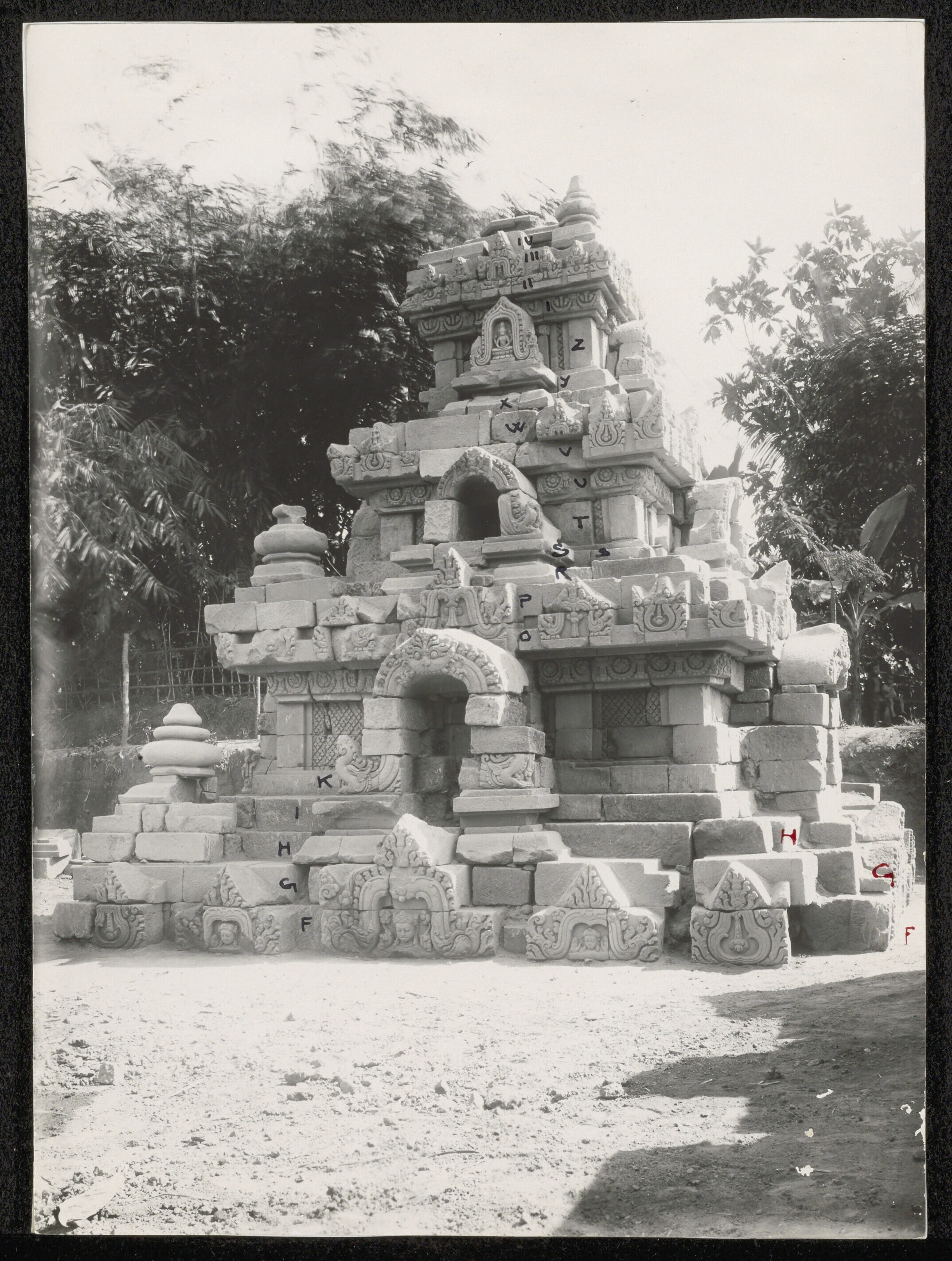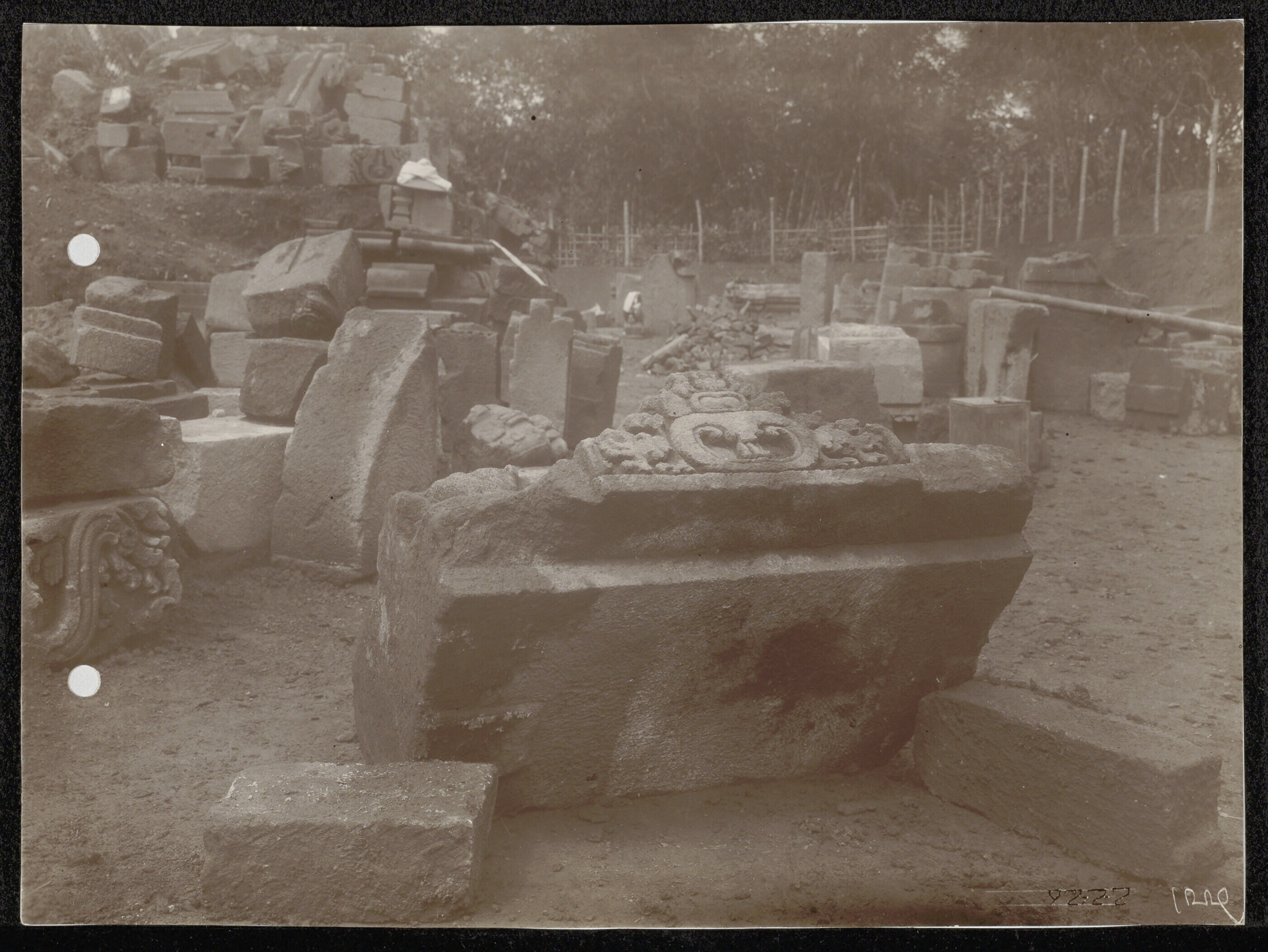 Delen van een Indo-Javaanse tempel bij Karangnongko ...