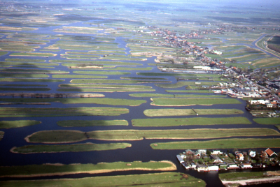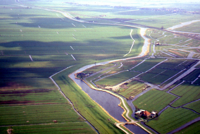 Luchtfoto van boezemvaarten met stedelijk en landeli...