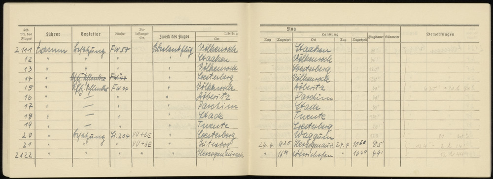 Flugbuch Hptm. Framm blad 21 - va 2111
