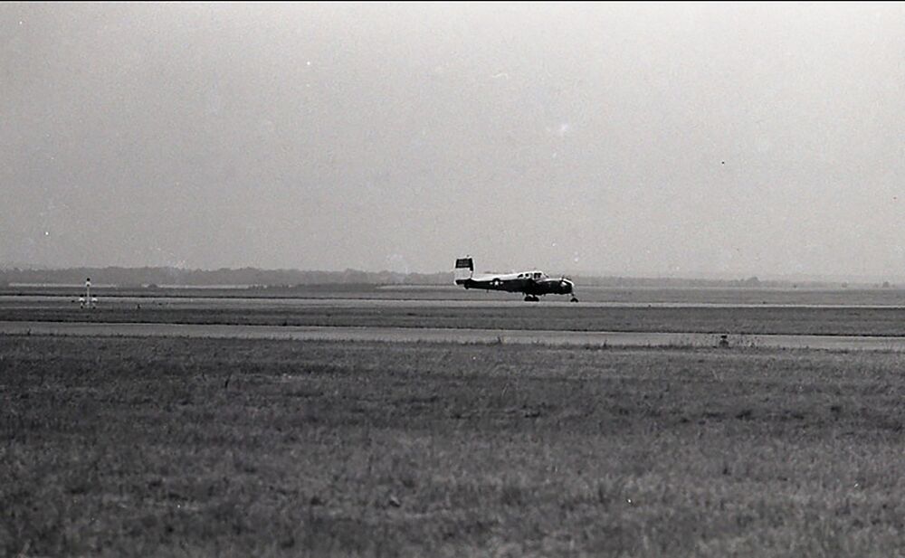 Beech U-8D 'Seminole' US Army 83065 op de rolbaan.