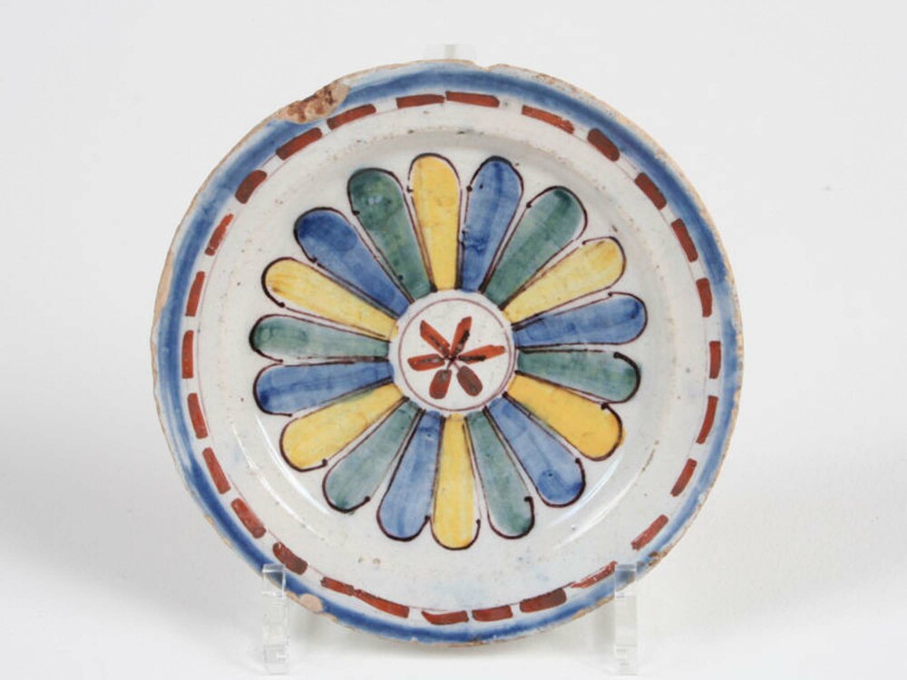 Scherf van keramiek, tinglazuur, gemaakt in Nederlan...