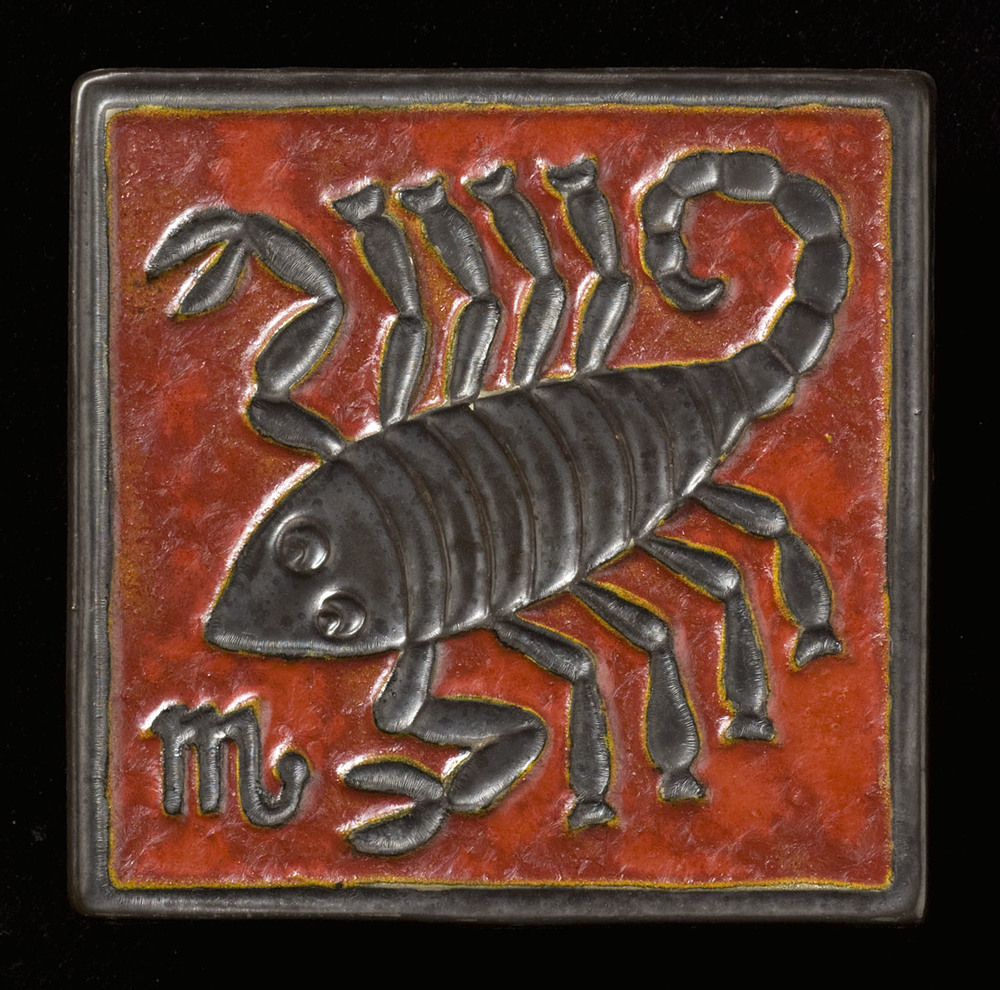 Tegel van keramiek, reliëf, voorstellende dierenriem...