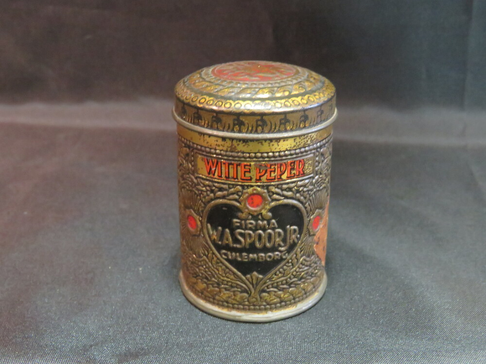 blik inhoudend witte peper, geassocieerd met W.A. Sp...