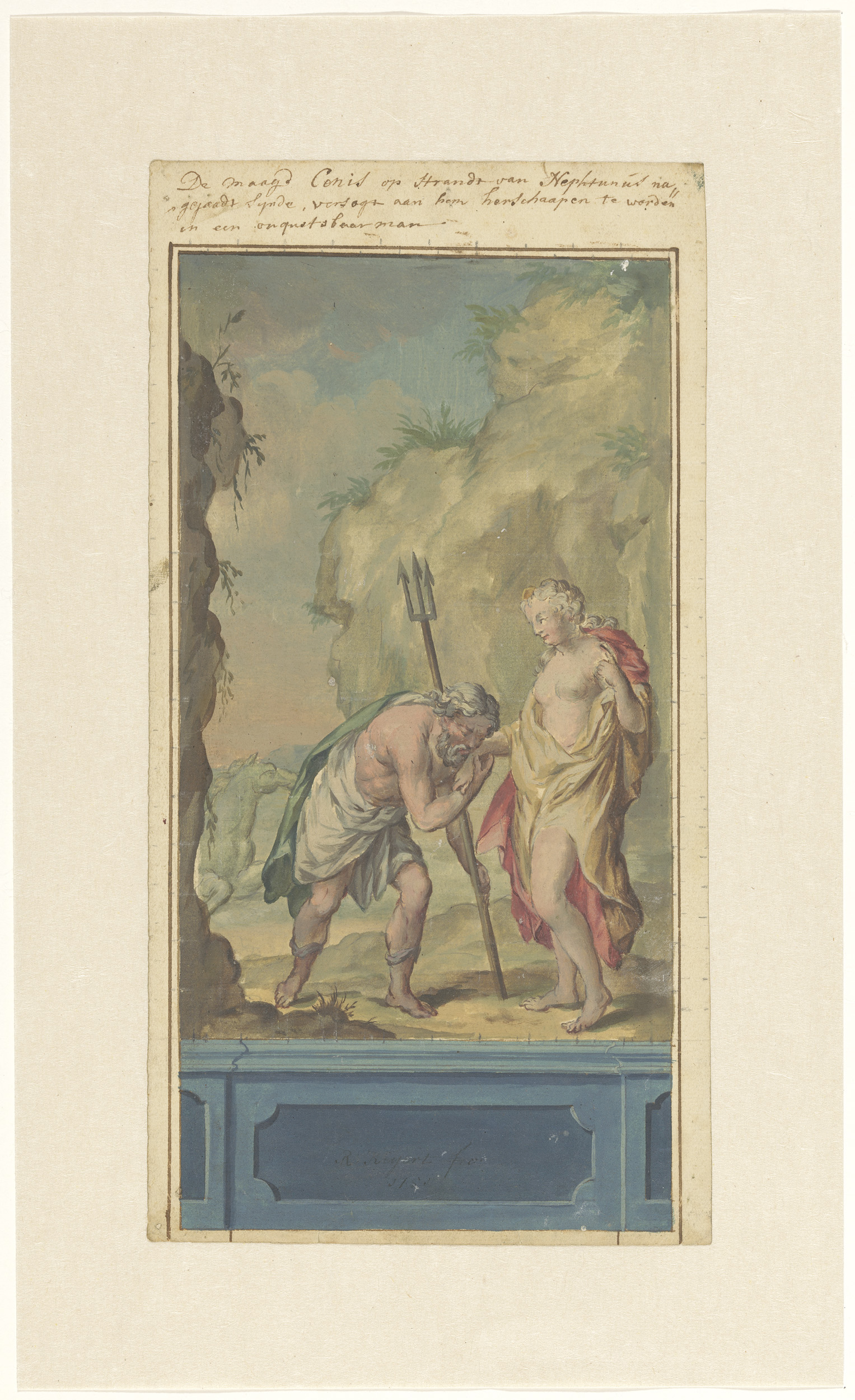 Ontwerp voor een behangschildering met Neptunus en C...