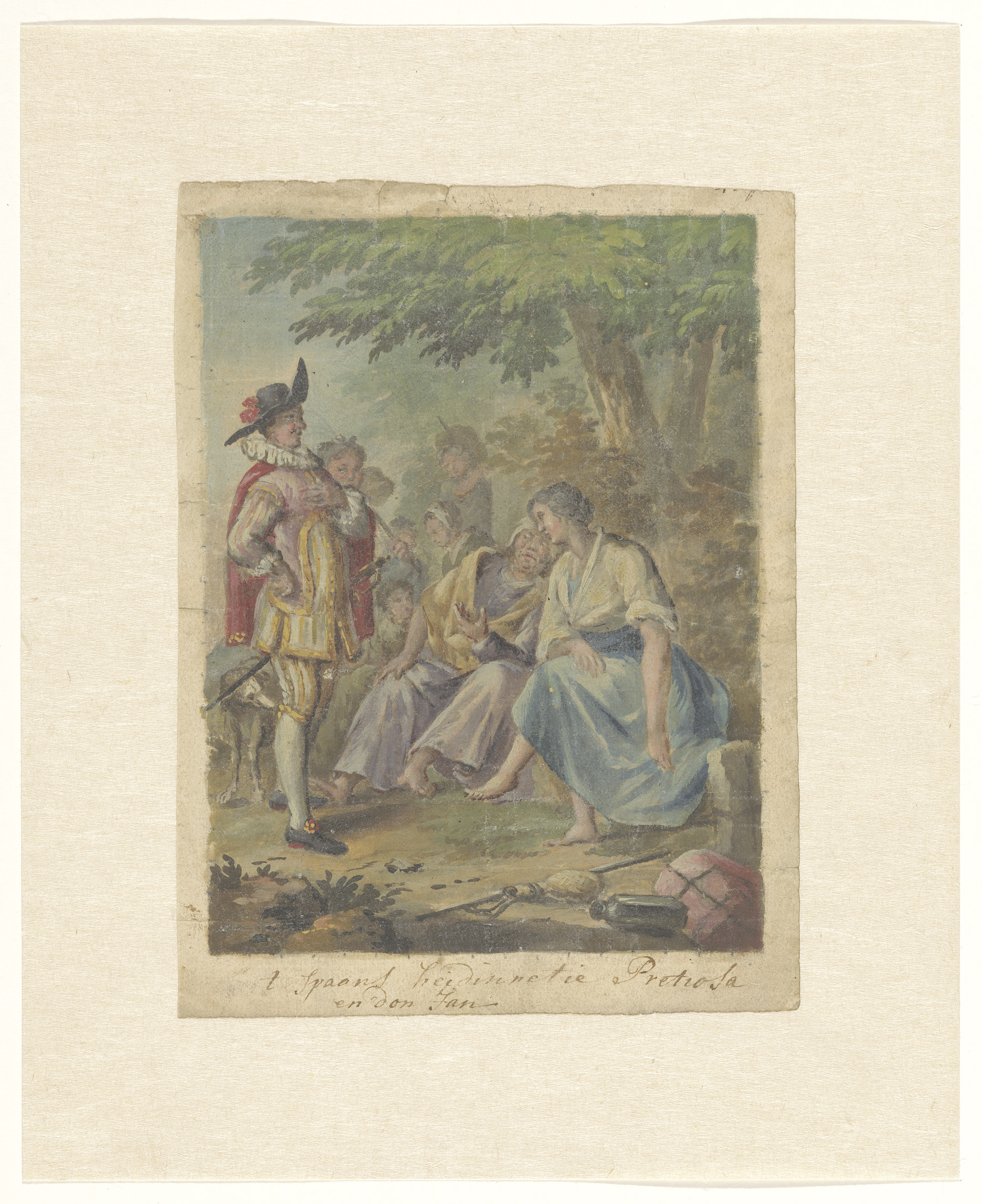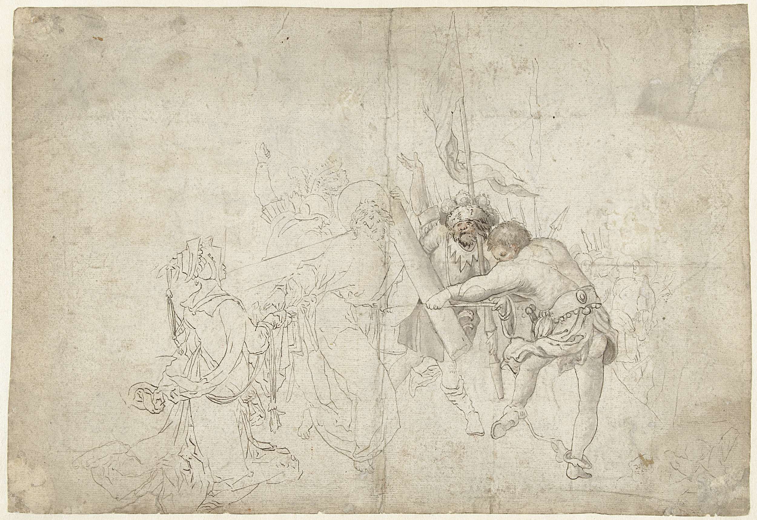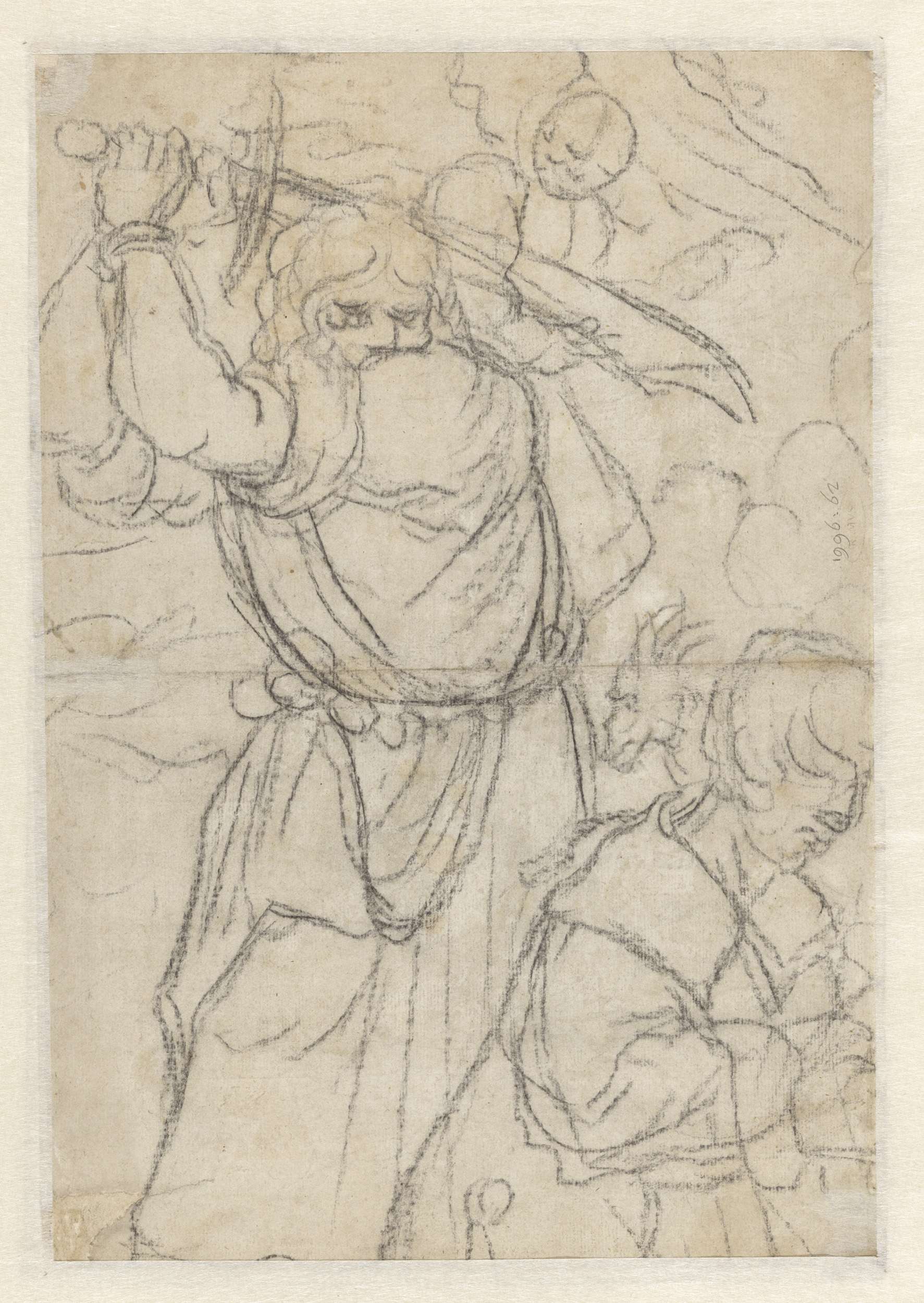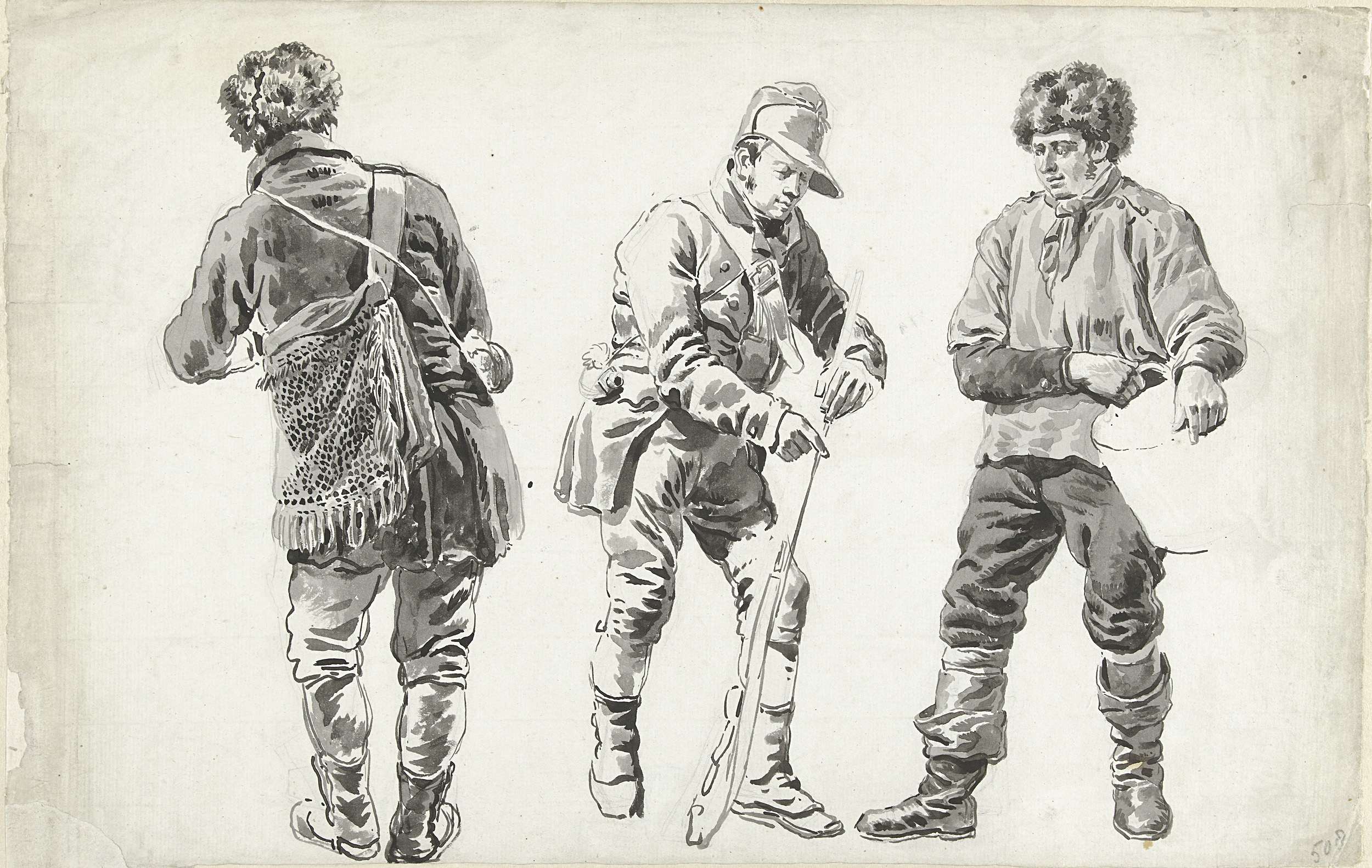 Studieblad met een jager (?) op de rug gezien, een s...