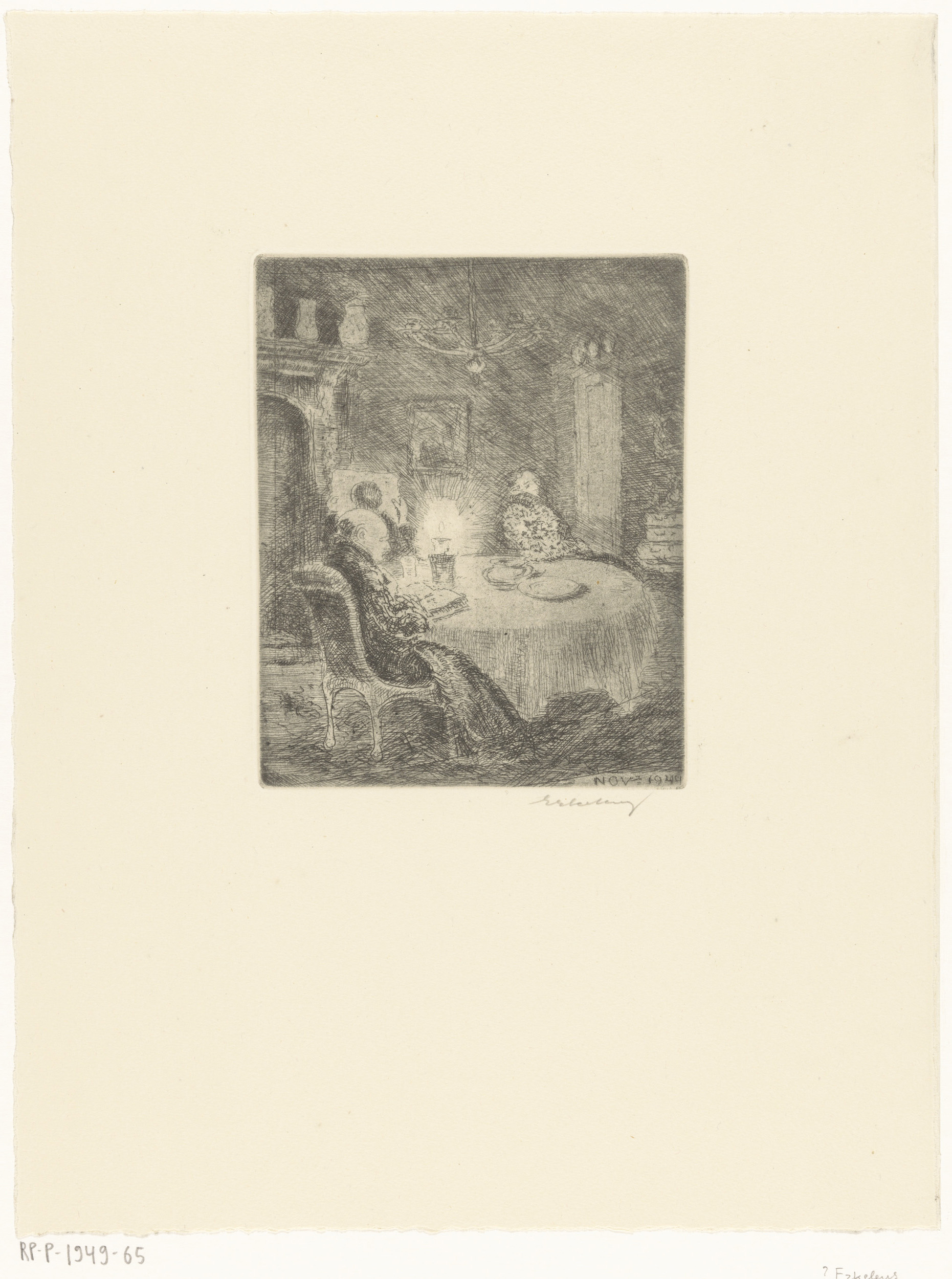 Lezende mannen bij kaarslicht