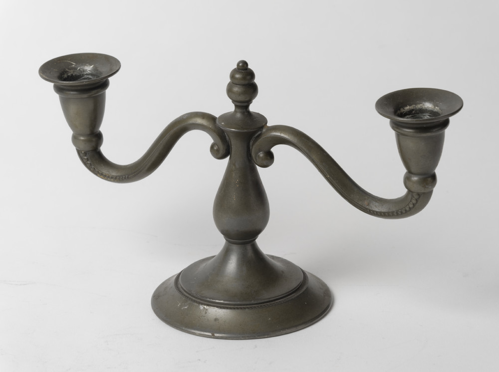 Kandelaar van oud tin, vervaardigd door Metaalwarenf...