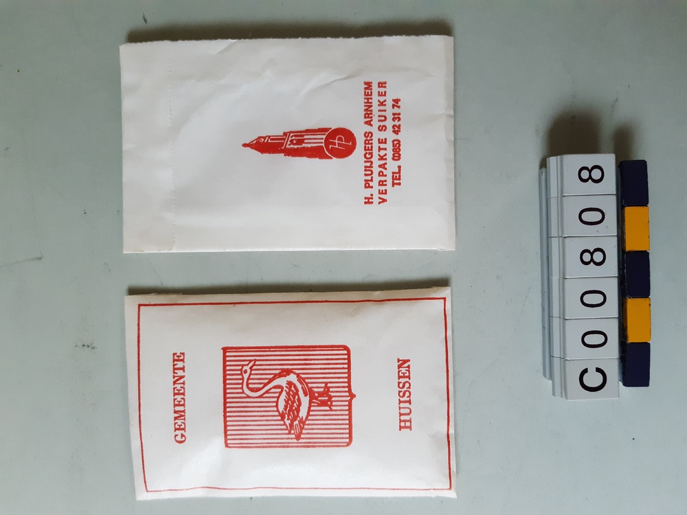 Verzameling suikerzakjes gemeente Huissen met afbeel...