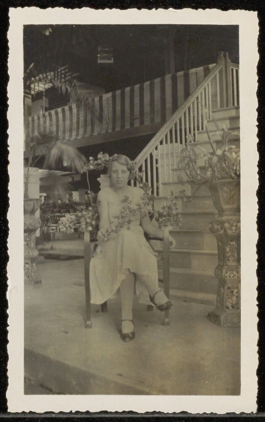 Woman on the veranda of a house, Tandjong Morawa