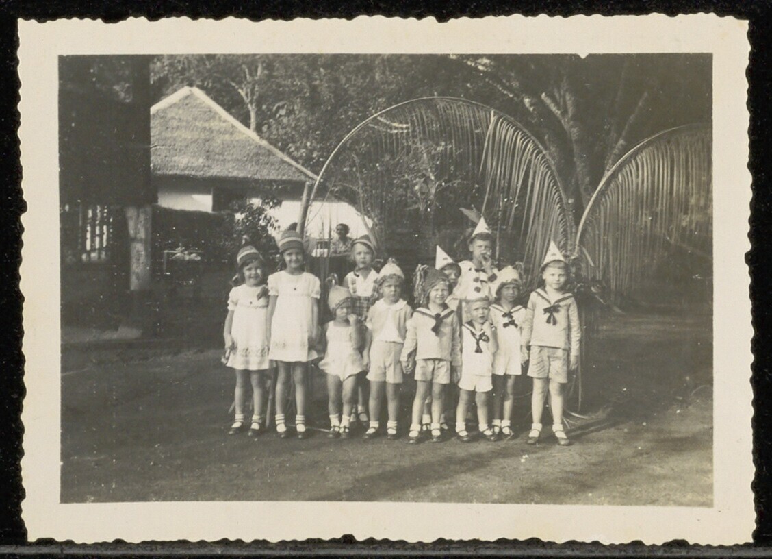 Groepsportret kinderen tijdens een verjaardagspartij...