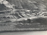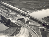 Drijvende kranen, schepen en schuiten bij het sluitg...